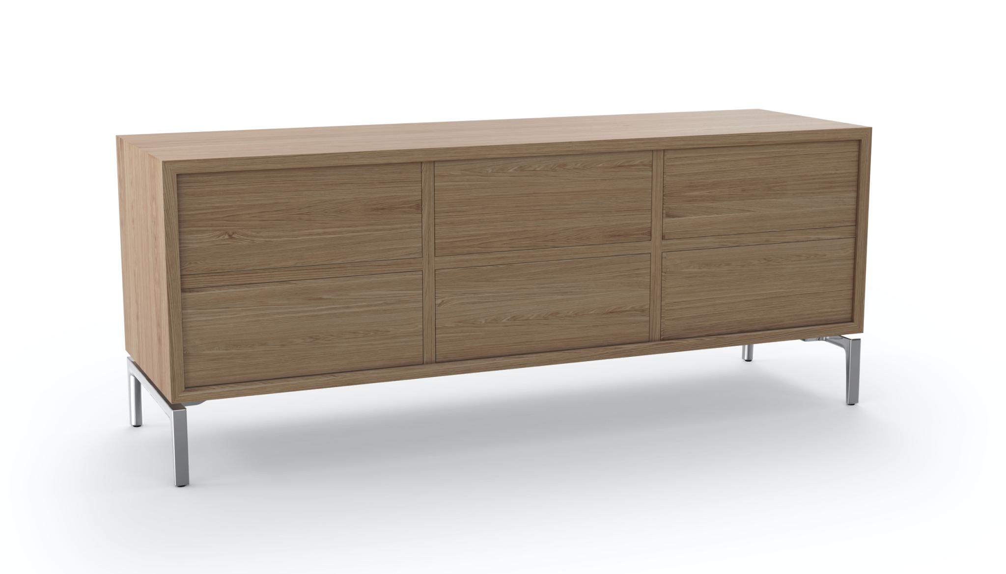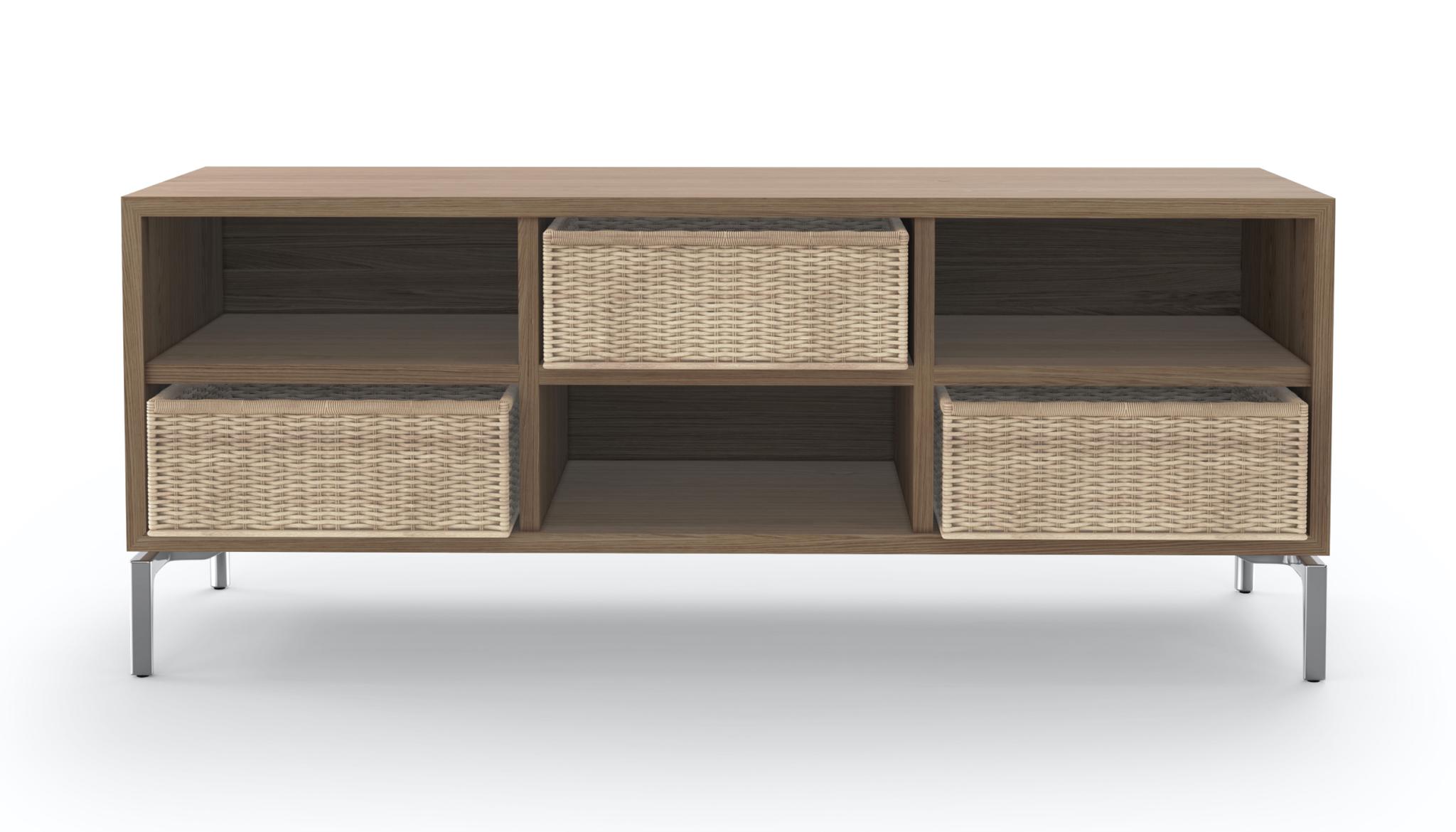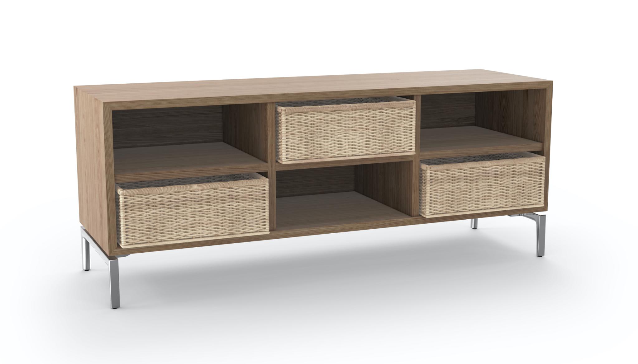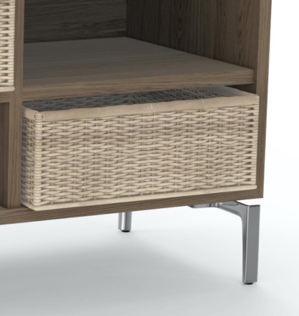 The natural refinement of wood, paired with saddle-hide and wicker, informs the design chest of drawers, part of the EX-S Night concept by Philippe Starck.