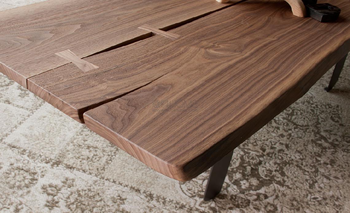 Coffee table with solid Canaletto walnut (NC) top and embossed graphite (GFM69) painted steel feet