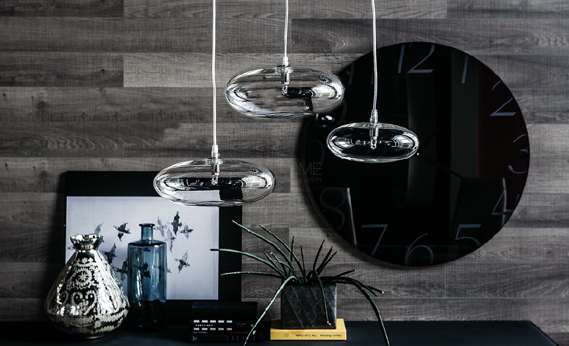 Ceiling lamp with borosilicate transparent glass lampshade. Bulb included.