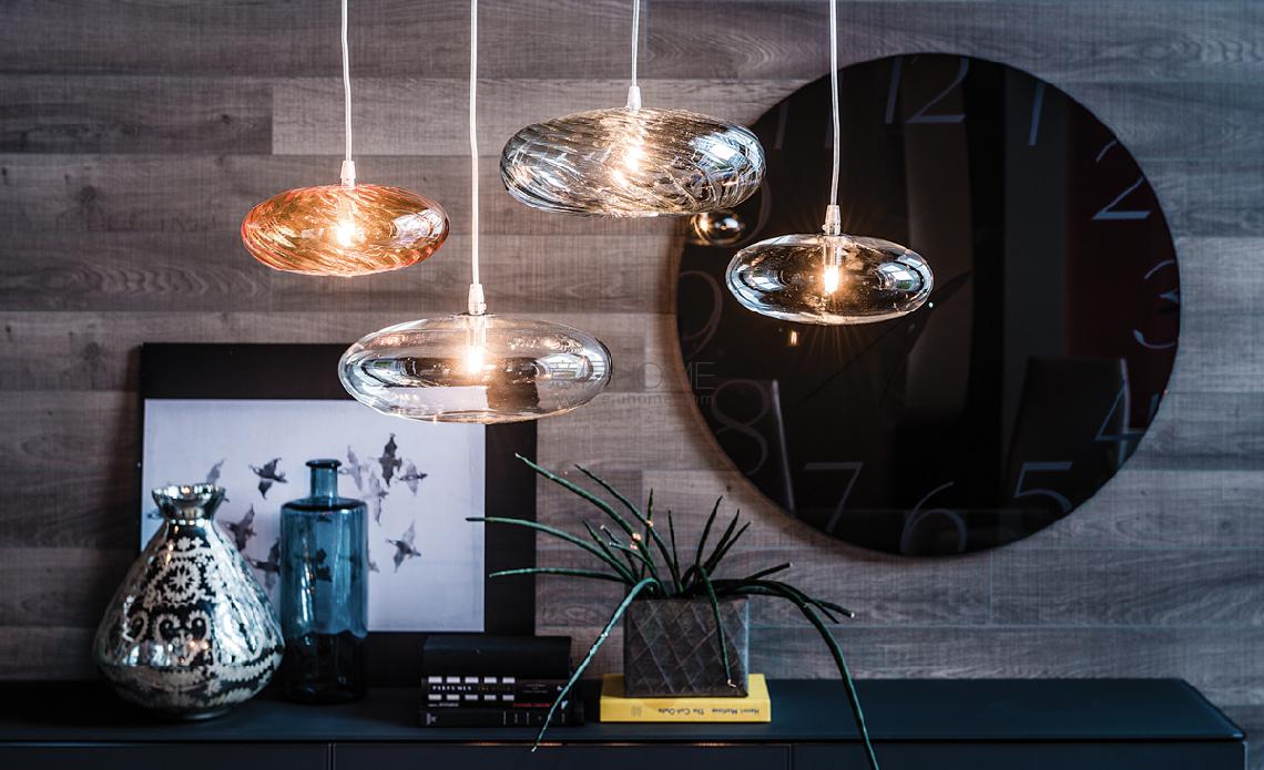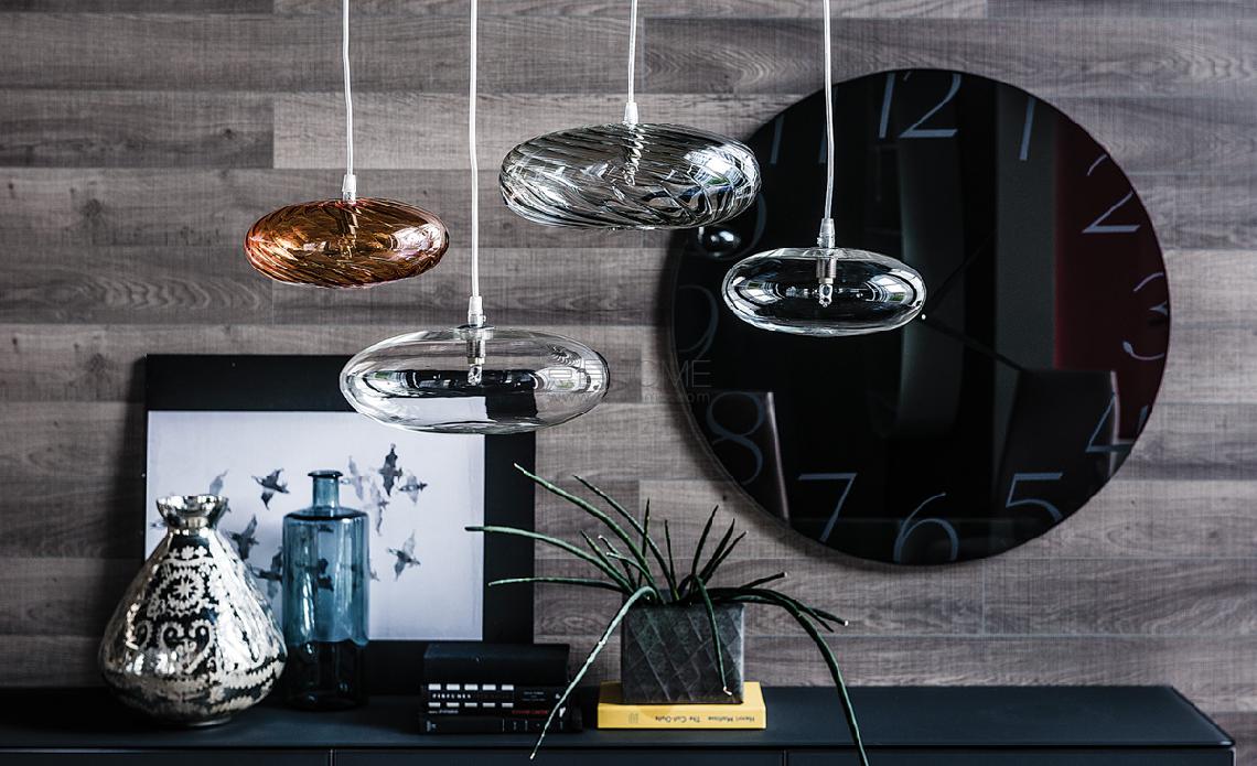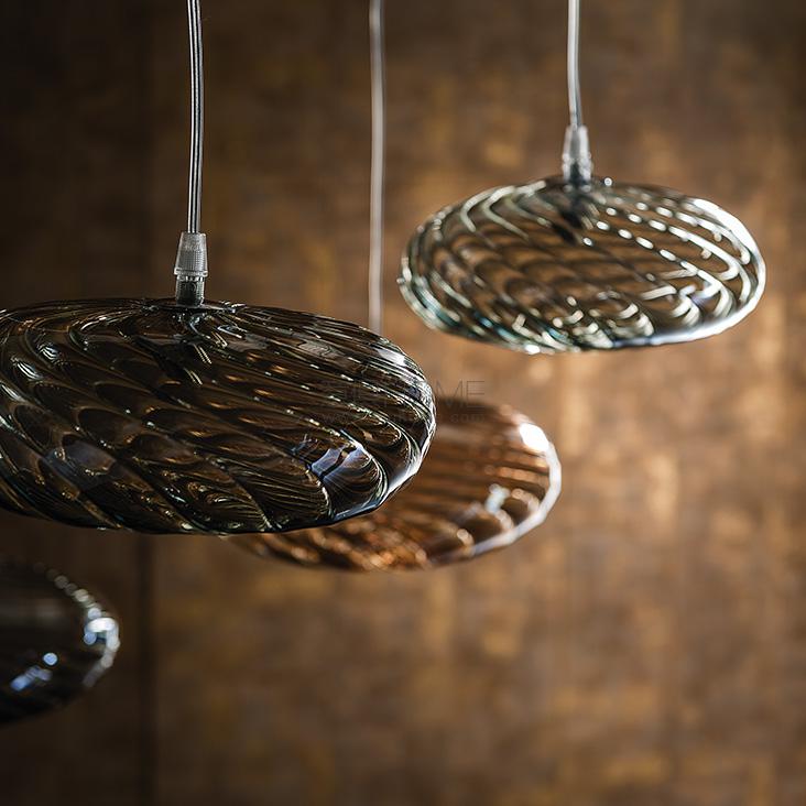 Ceiling lamp with lampshade in borosilicate glass in color orange or fumé. Bulb included.