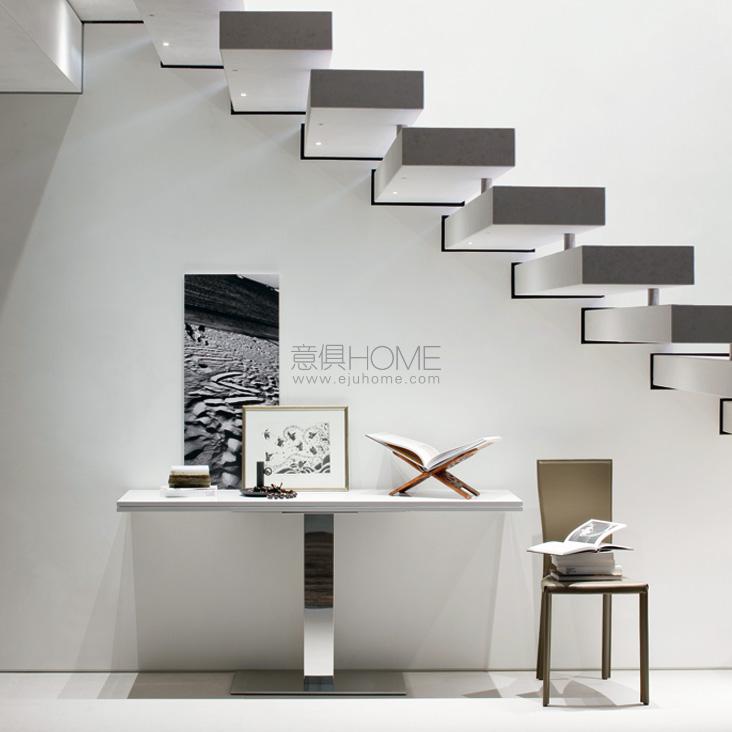 Table with base in graphite (GFM69), white (GFM71) embossed lacquered steel or with satin stainless steel anti-marks base and polished stainless steel column. Top in 15mm clear glass, grey London Fenix (LM21) or castoro Ottawa Fenix (LM22) laminated wood.
