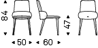 Chair with steel frame upholstered in fabric, synthetic nubuck, micro nubuck, synthetic leather or soft leather as per sample card. The cover is not removable.