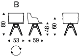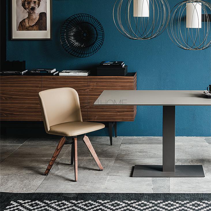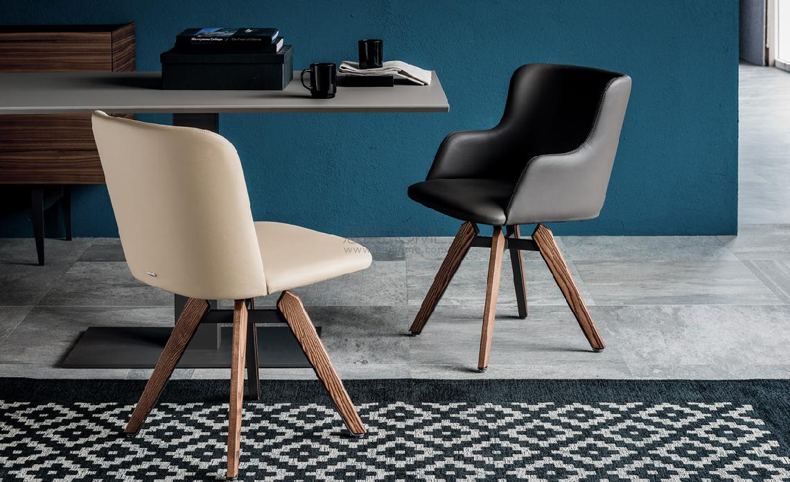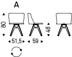 Swiveling chair with or without arms, with graphite (GFM69) or white (GFM71) embossed lacquered steel frame. Feet in natural ashwood (frN), Canaletto walnut stained ashwood (frNC), burned oak stained ashwood (frRB) or open pore matt white (fr71) or black (fr73) painted. Seat and back upholstered in fabric, synthetic nubuck, micro nubuck, synthetic leather or soft leather as per sample card.