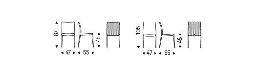 Upholstered chair with steel frame and covered in synthetic leather, synthetic nubuck or soft leather as per sample card. Quilted seatback cover. The cover is not removable.