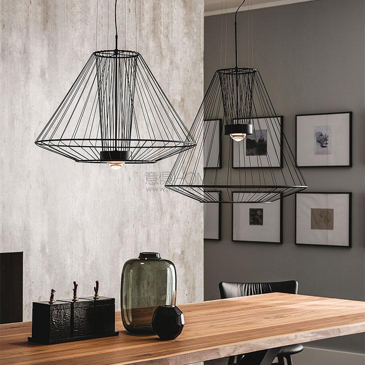 Ceiling lamp with frame in matt black (OP17) steel and black caoutchouc extensible lampshade. Bulb included.