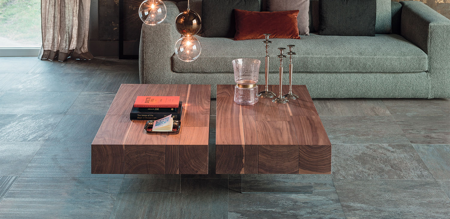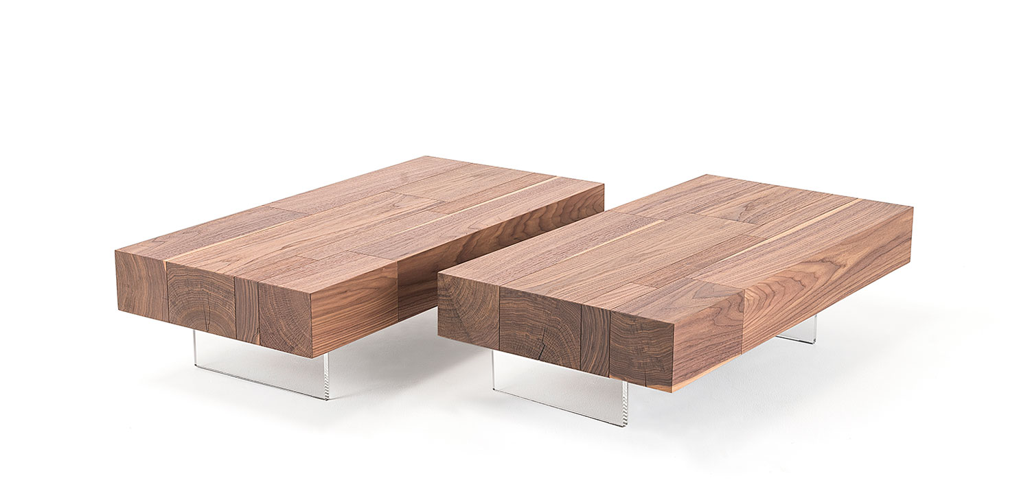Canaletto walnut (NC) coffee table with trasparent methacrylate feet.