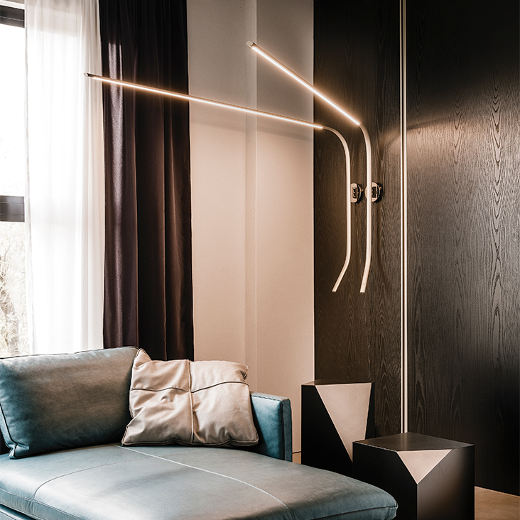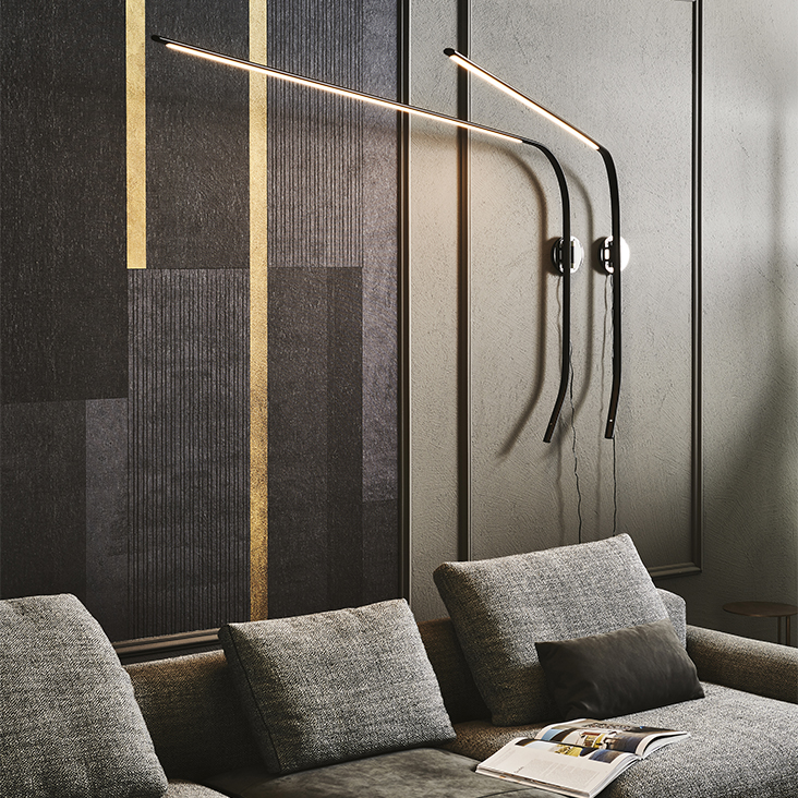 Adjustable wall lamp in titanium (GFM11), graphite (GFM69), white (GFM71) or black (GFM73) embossed lacquered steel frame. Led lights.