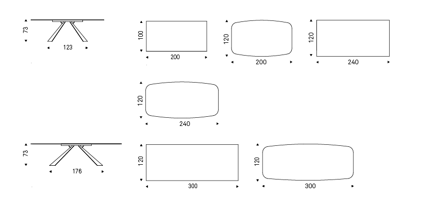 Table with base in titanium (GFM11), bronze (GFM18), graphite (GFM69), white (GFM71) or black (GFM73) embossed lacquered steel. Top 12mm thick in extra clear bevelled glass with artistic decorative printing in two different colours (CY01, CY02).