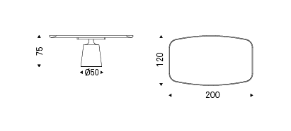 Table with base in graphite (GFM69), white (GFM71), black (GFM73) embossed lacquered steel or satin titanium steel (11). Top in ceramic Marmi Calacatta (KM01), Alabastro (KM02), Ardesia (KM04), matt Golden Calacatta (KM05), glossy Golden Calacatta (KM06), matt Portoro (KM07), glossy Portoro (KM08), glossy Sahara Noir (KM09), Emperador (KM10), Makalu (KM11), Breccia (KM12) or Arenal (KM13) with Brushed Bronze or Brushed Grey lacquered and rounded lower profile.