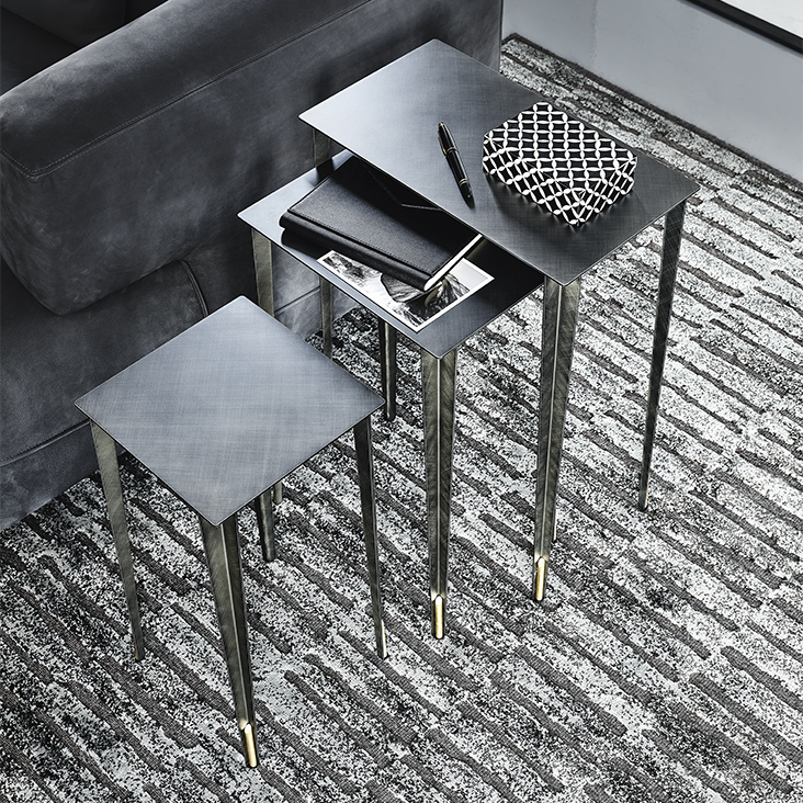Coffee table with structure in Brushed Brass, Brushed Bronze or Brushed Grey lacquered steel and brass details.