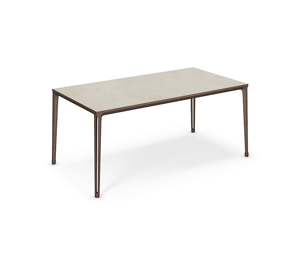 Boulevard is a design dining table with a disarming simplicity. It fits into a residential setting with ease and contemporary charm. The legs have a vertical cavity, enhanced by sophisticated varnished finishes chosen from among different intense or bright shades. The same finish rigorously frames the top, available in glass or ceramic.