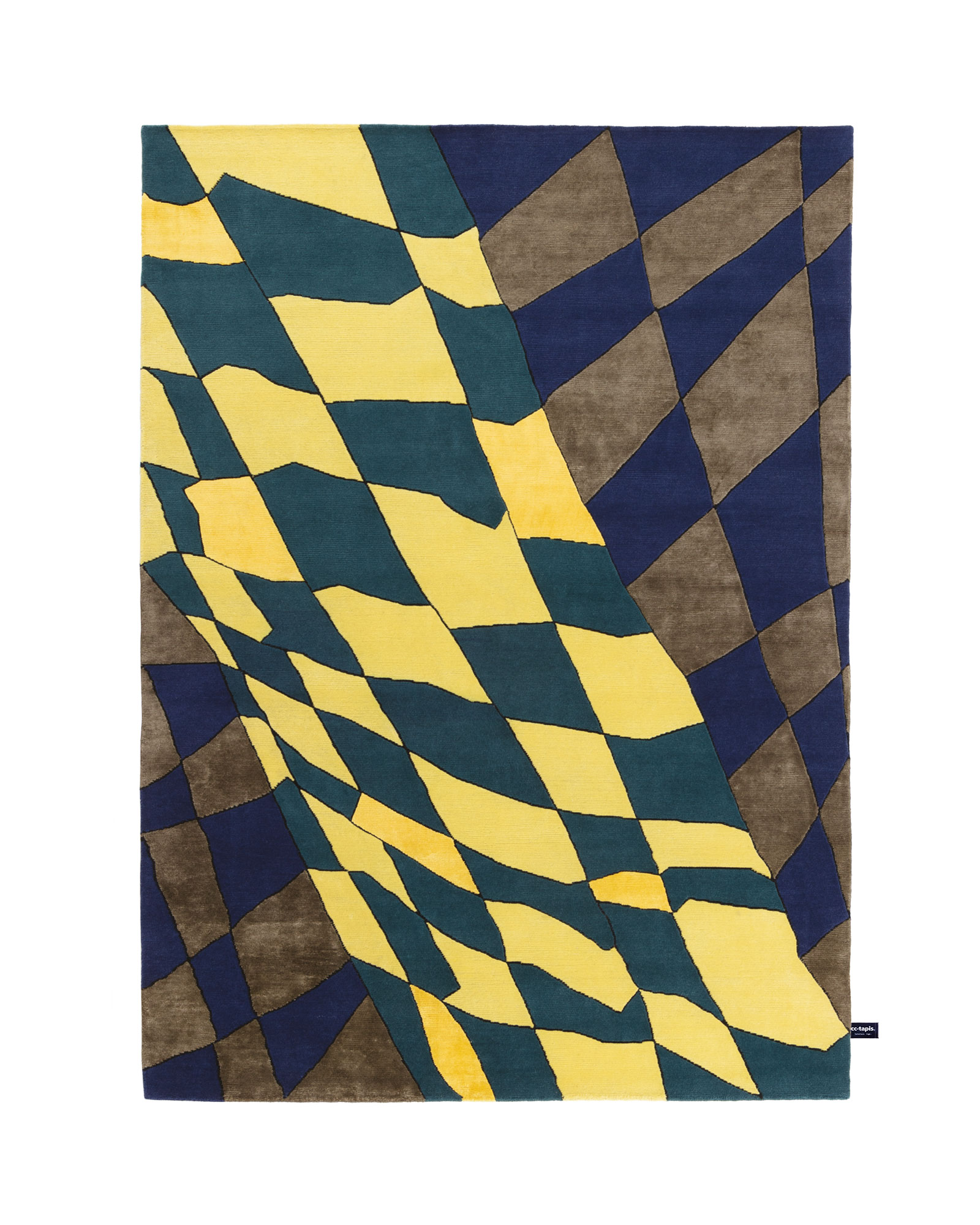 Multiple planes of brilliant chequerboards clash and crackle in Martino Gamper’s Xequer collection for cc-tapis. The bright, piercing colors intertwine and overlap in a psychedelic world born from Gamper’s imagination. Hand knotted with Himalayan wool, pure silk and linen, the materials interplay in the same way as the colour-blocked grids, resulting in a brilliant collision of textures and shades. Twisted lines, distorted perspectives and the graphics play typical of Gamper’s designs culminate in five spellbinding new rugs.