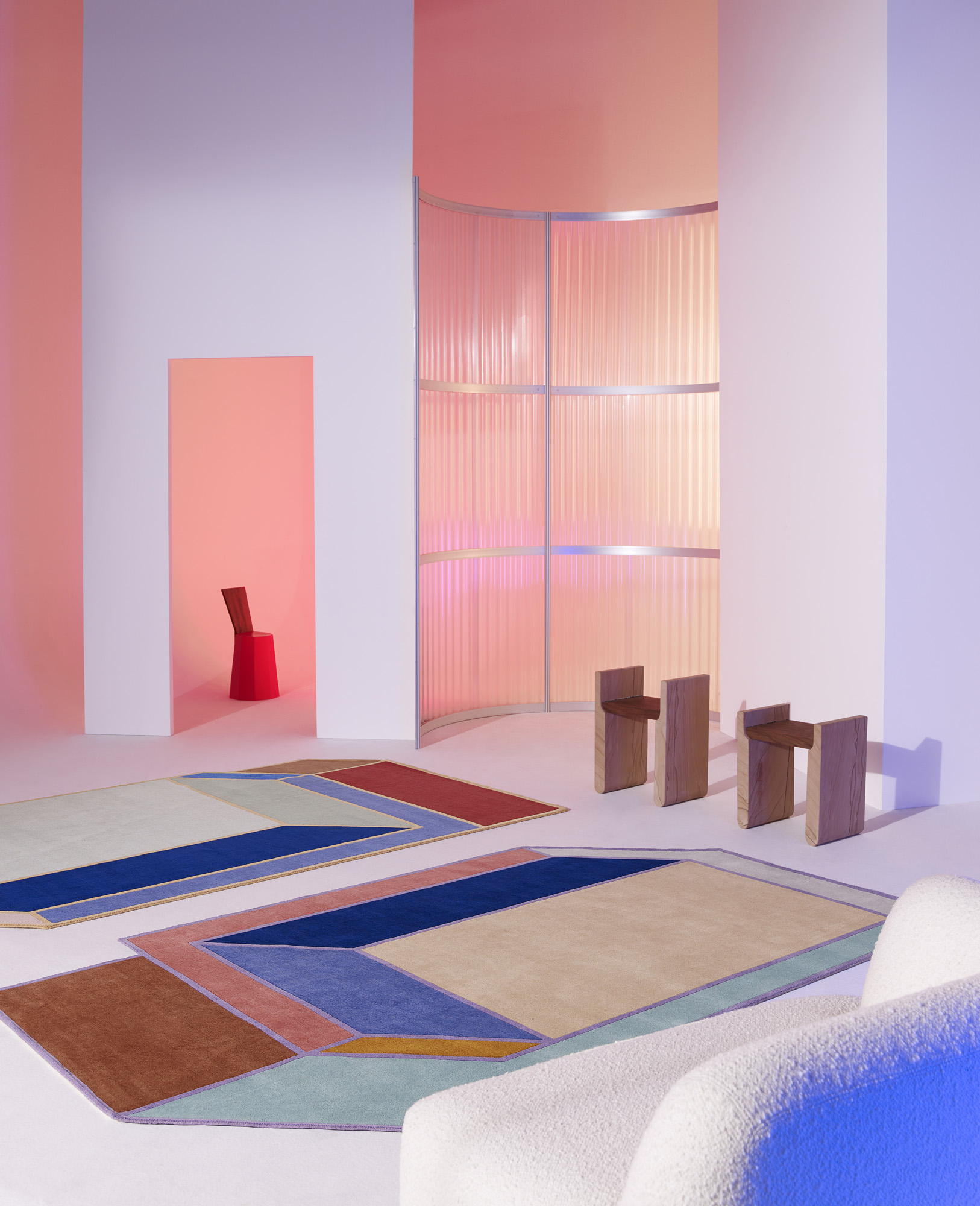 An unprecedented synthesis between an age-old technique and abstract graphics. The two rugs have been produced solely by hand with colors and materials that testify to the desire to give value to ancient production techniques adding a contemporary breath to them