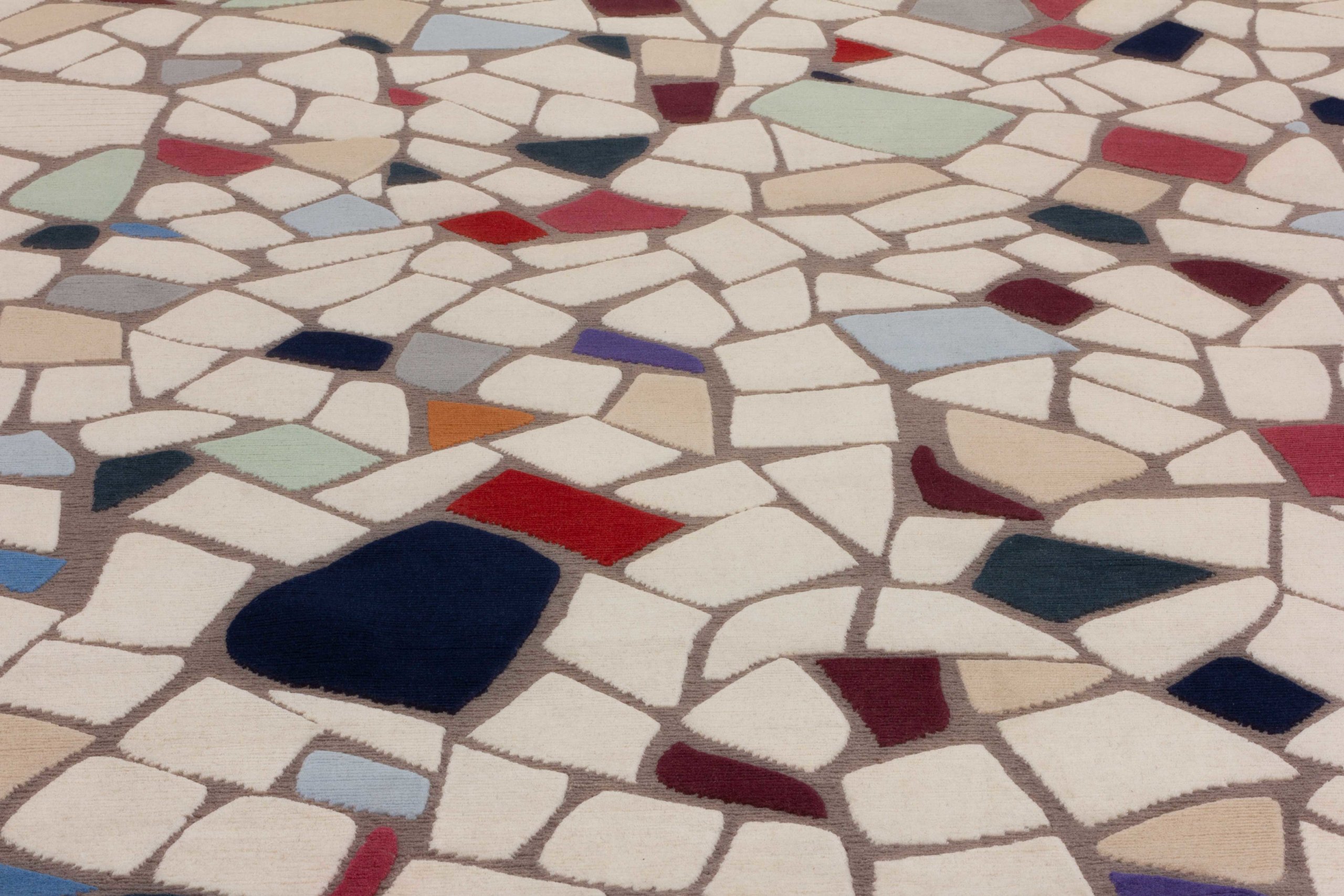 The Chand rug is inspired by the unusual story of Indian sculptor Nek Chand, a government official of Chandigarh, who in 1957 secretly started to build a garden in his spare time, in a national park where construction was forbidden.