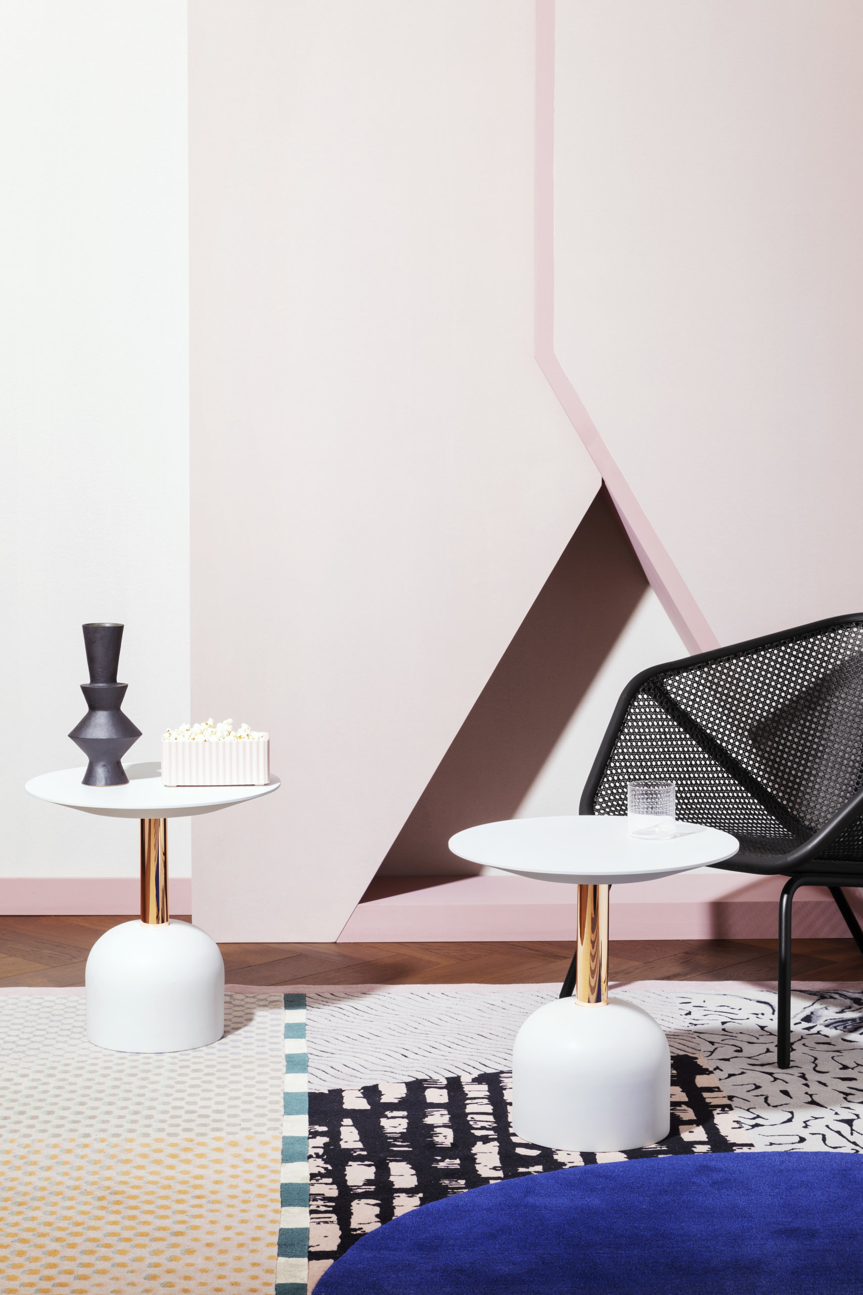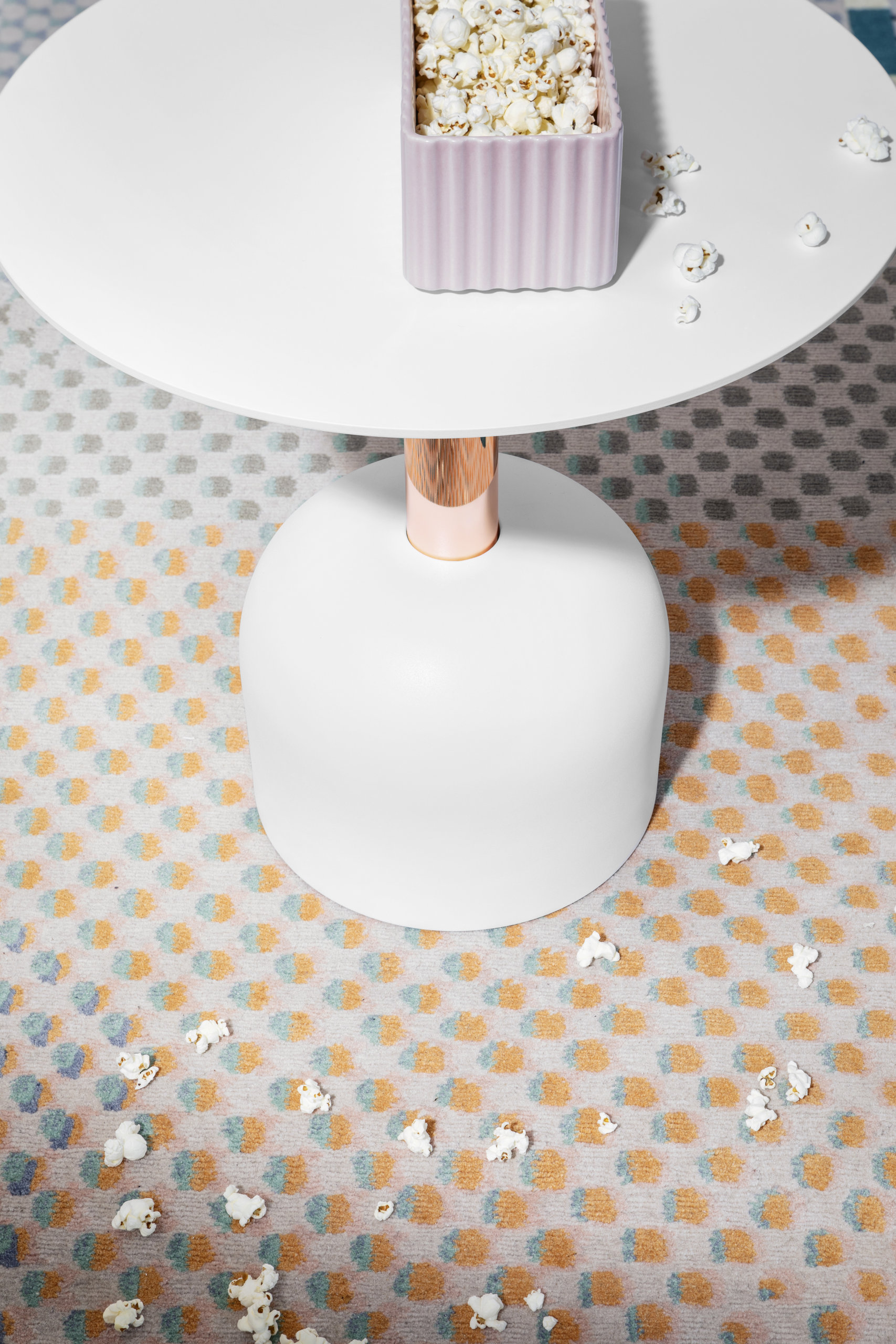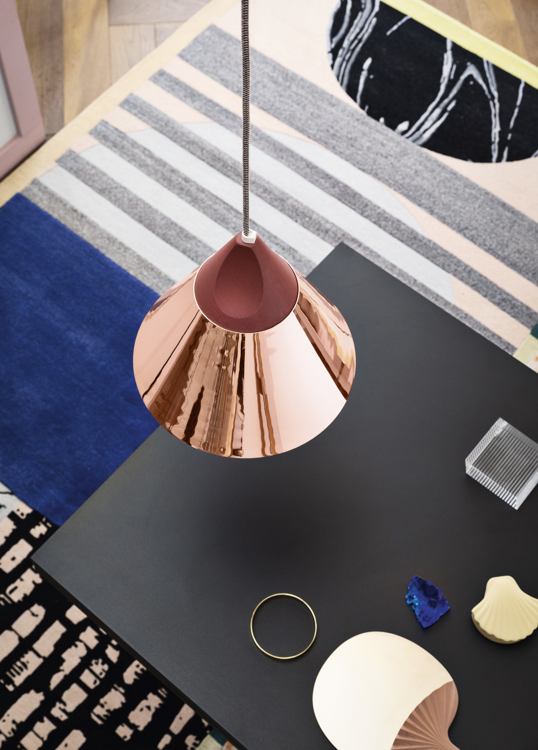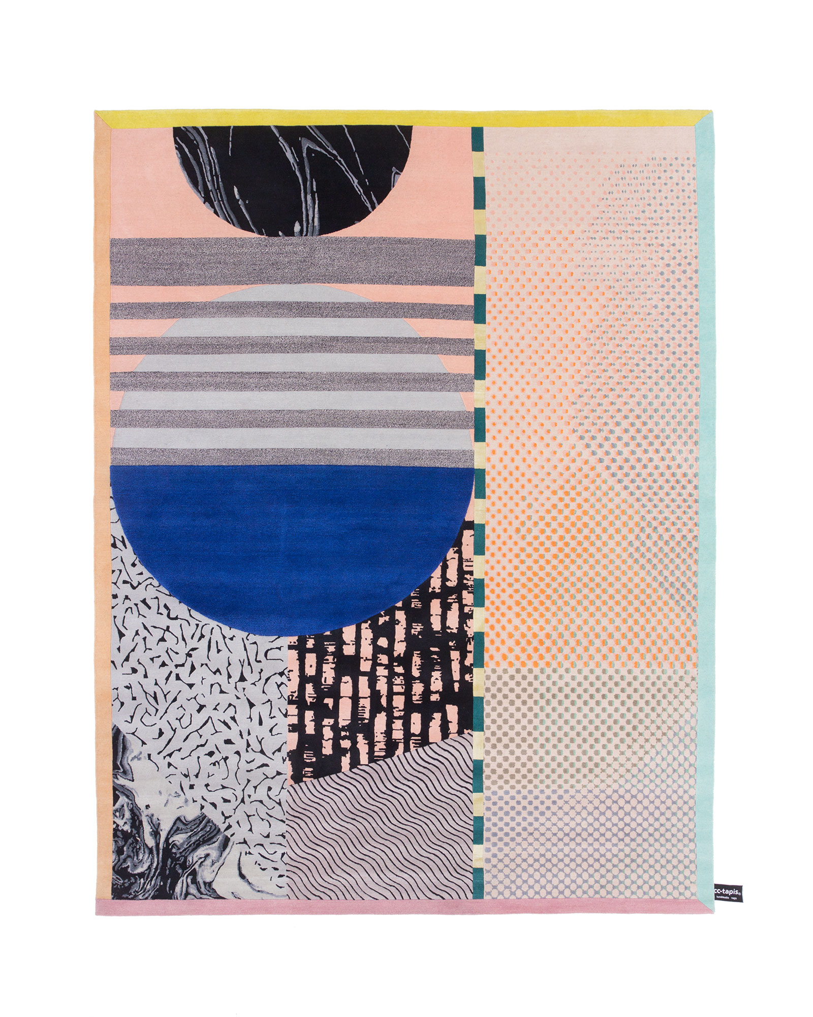 ONE OR THE OTHER is a collection inspired by various materials of the physical world that have opposing characteristics of fiber or textile with which they are paired. This collection is an abstract representation of the concept of unique worlds colliding and coexisting on one surface. Additionally, it is a celebration of color and pattern—a positive stimulation of the senses.