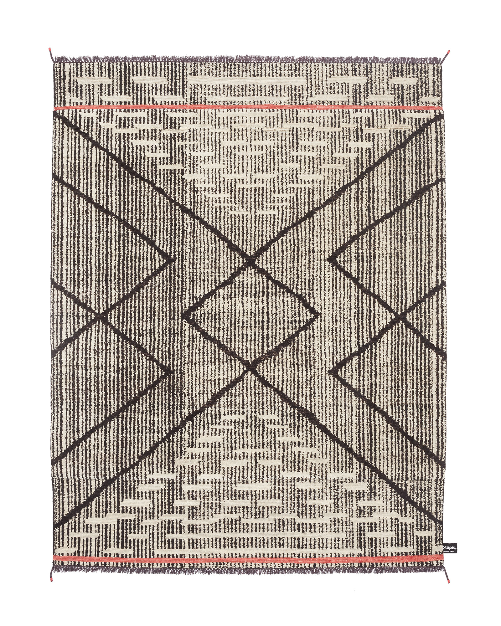 Primitive Weave by Chiara Andreatti. A collection inspired by Moroccan Berber rugs, infused with the rigorous Viennese geometric graphics from the 20th century. A mixture of Nepalese flatweave and different pile heights, the effortless combination of cultures and knotting techniques make these rugs rich in texture and aesthetics. Rugs that are as unique as they are beautiful.