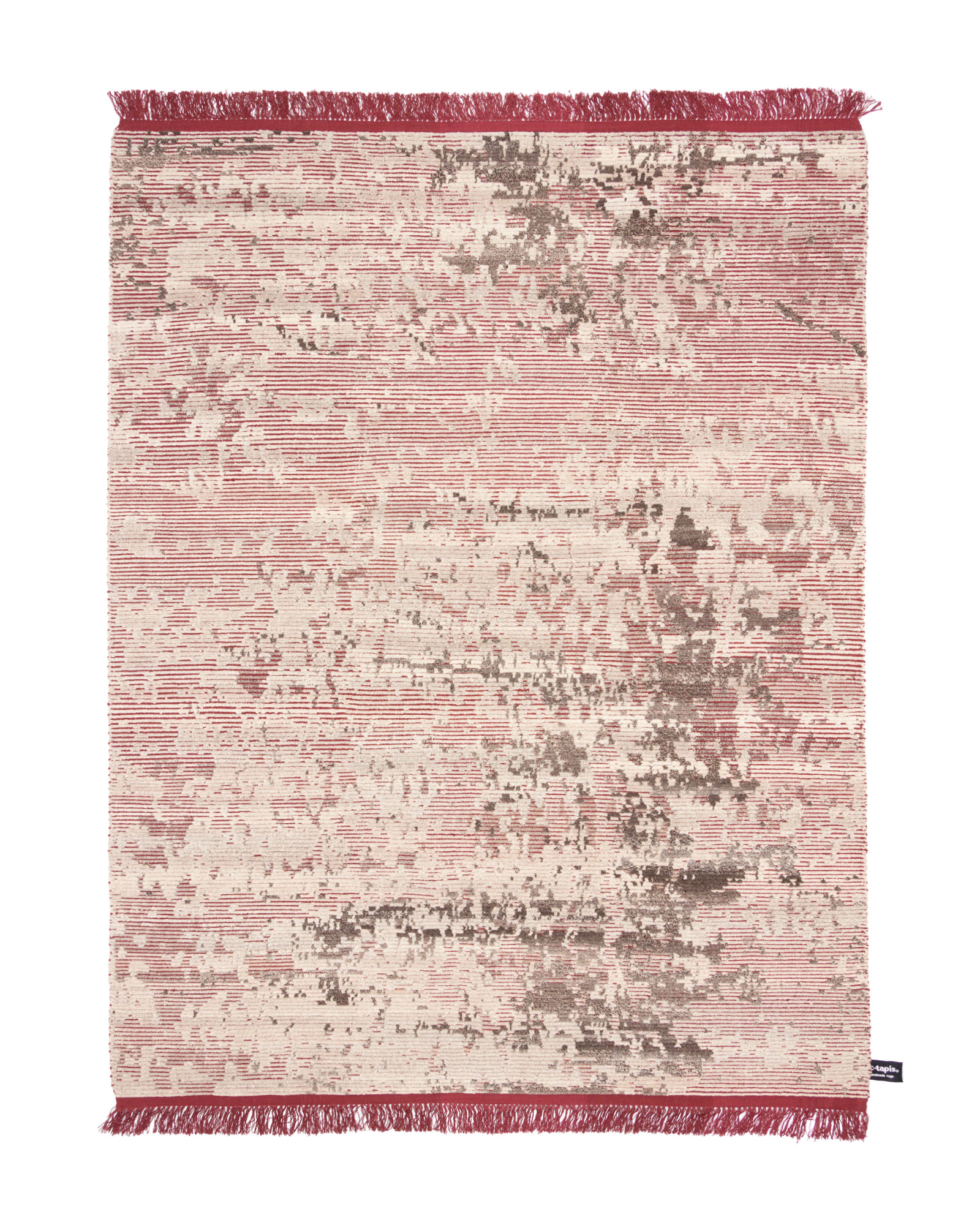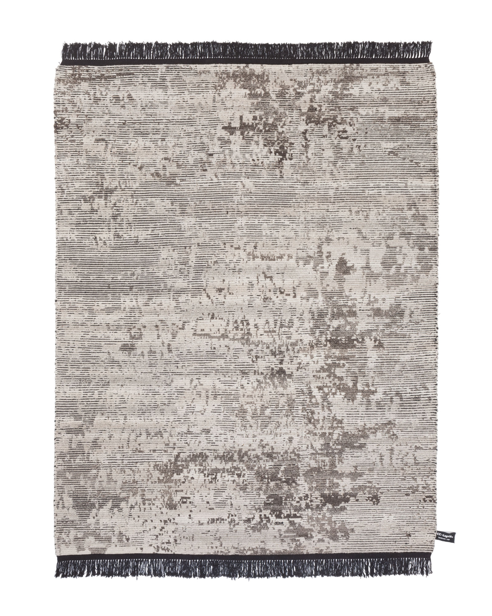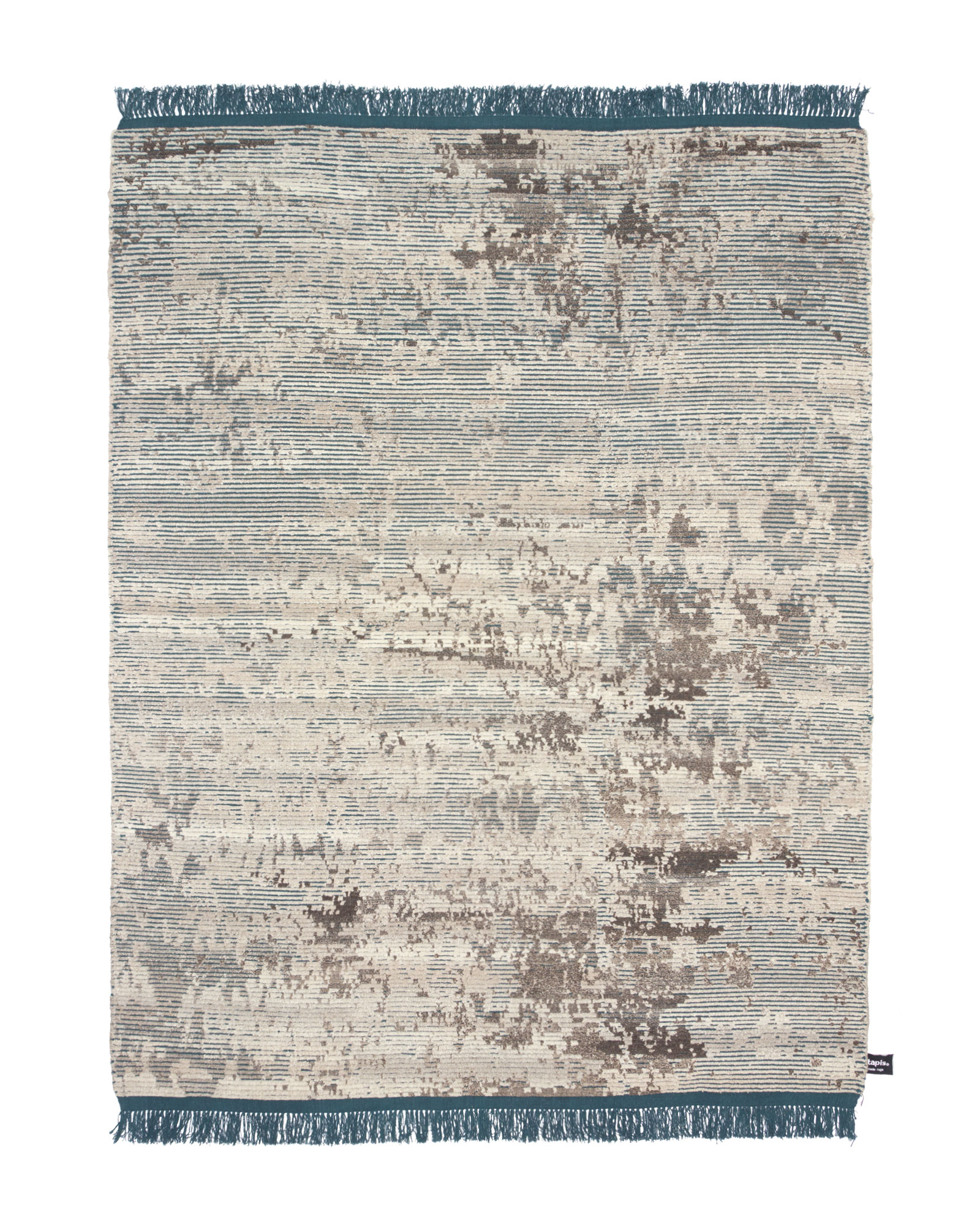 Beauty in simplicity, thick undyed Himalayan wool is knotted onto a colorful cotton warp. The knots are cut at random by the artisans causing some knots to open whilst others remain closed. The color of the cotton is diffused through the natural and warm colors of the wool, more evident where the knots have remained closed and less visible where the knots are open. Creating a beautifully random and worn-down effect which gives the collection its name.