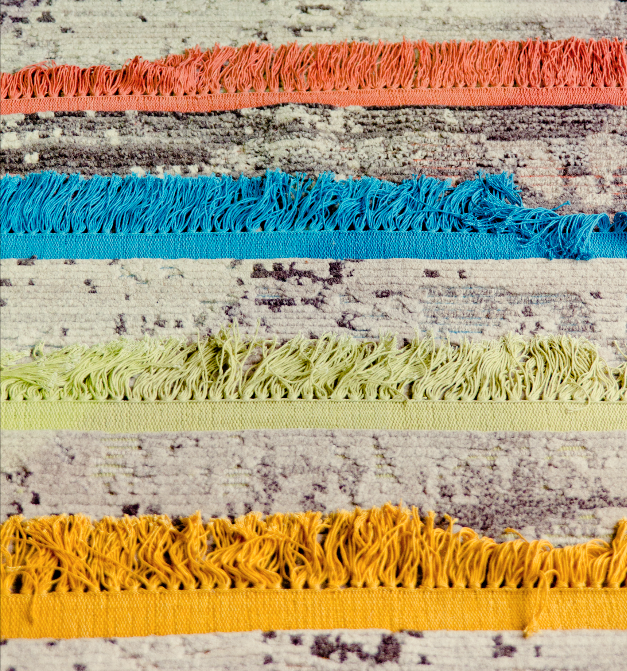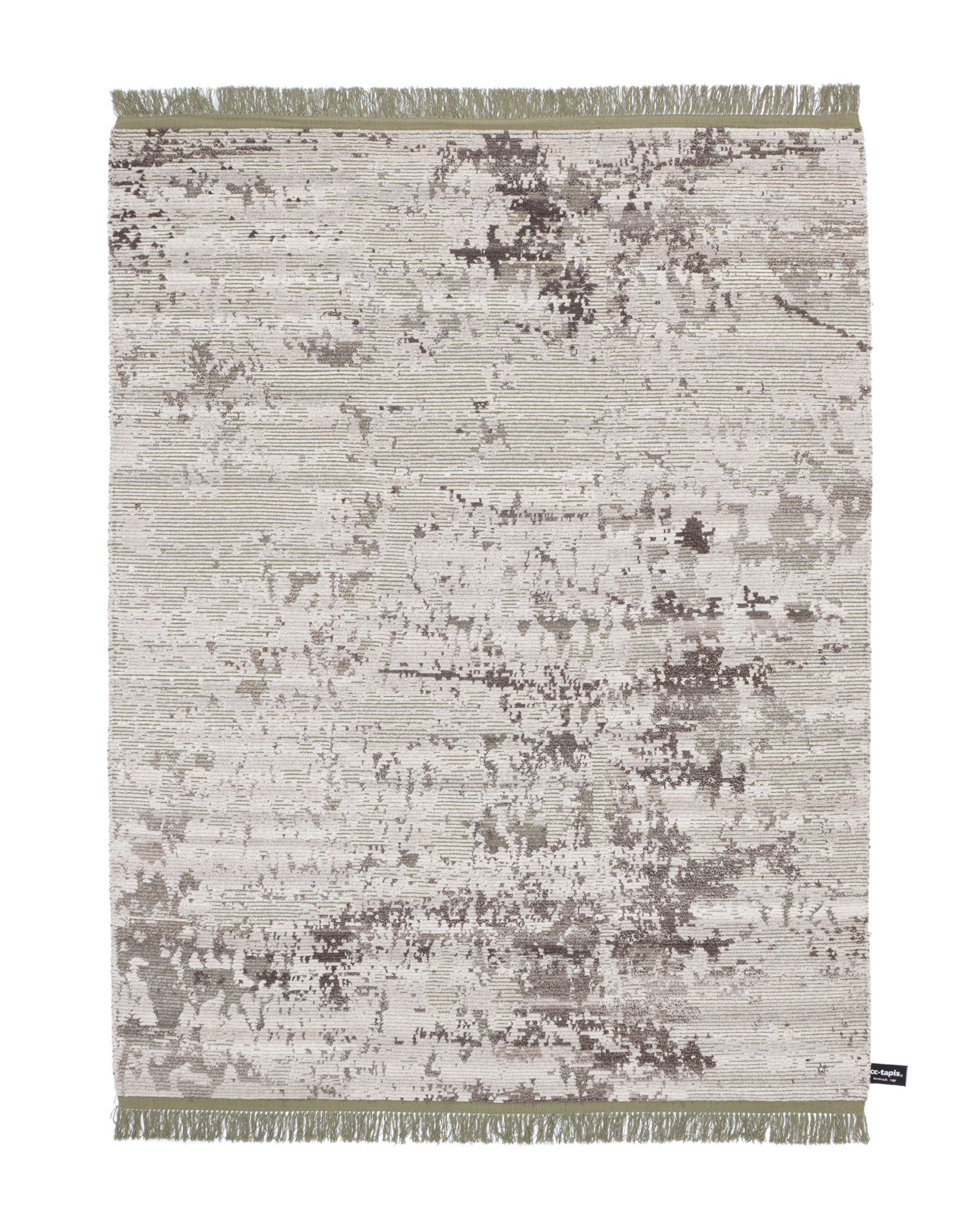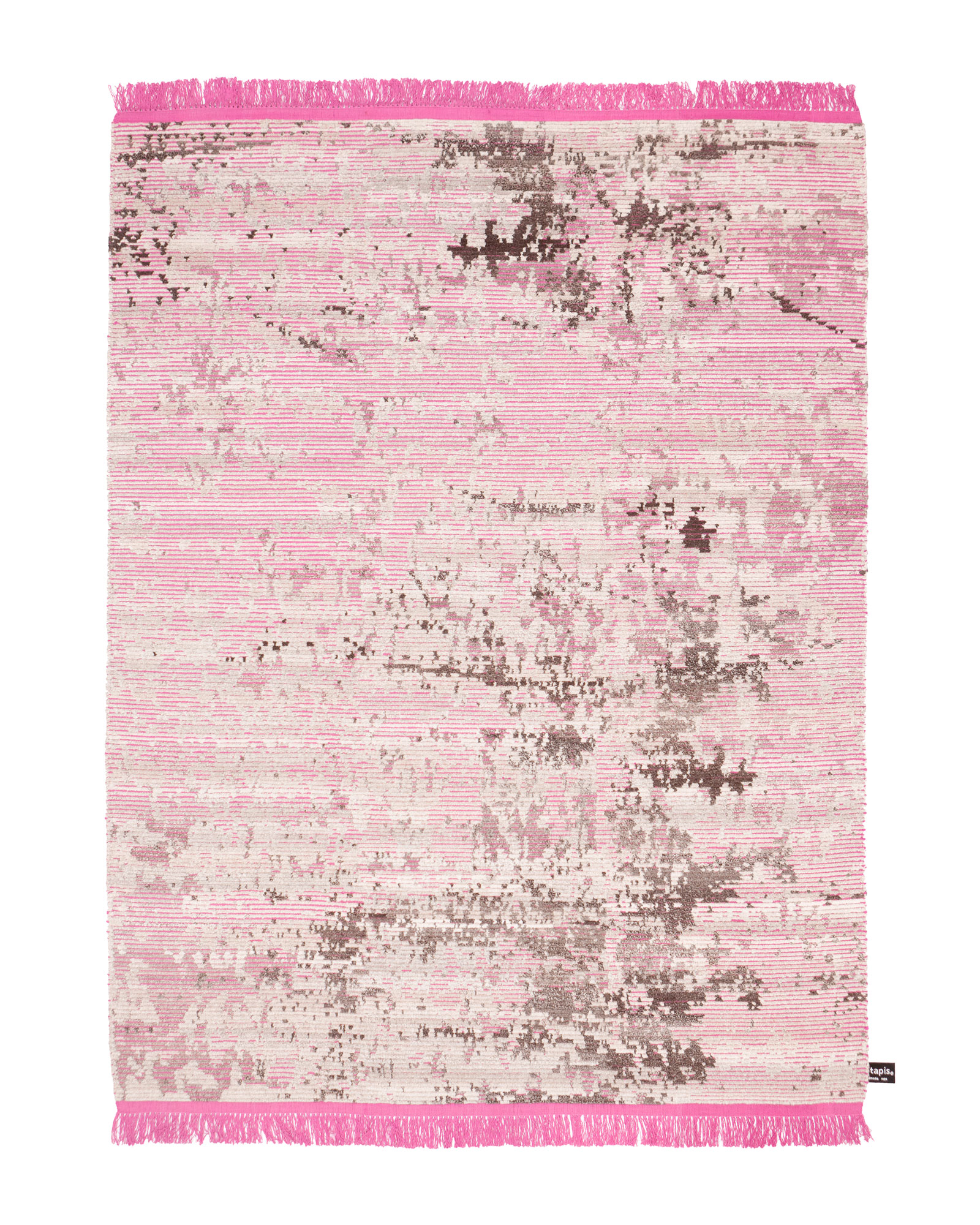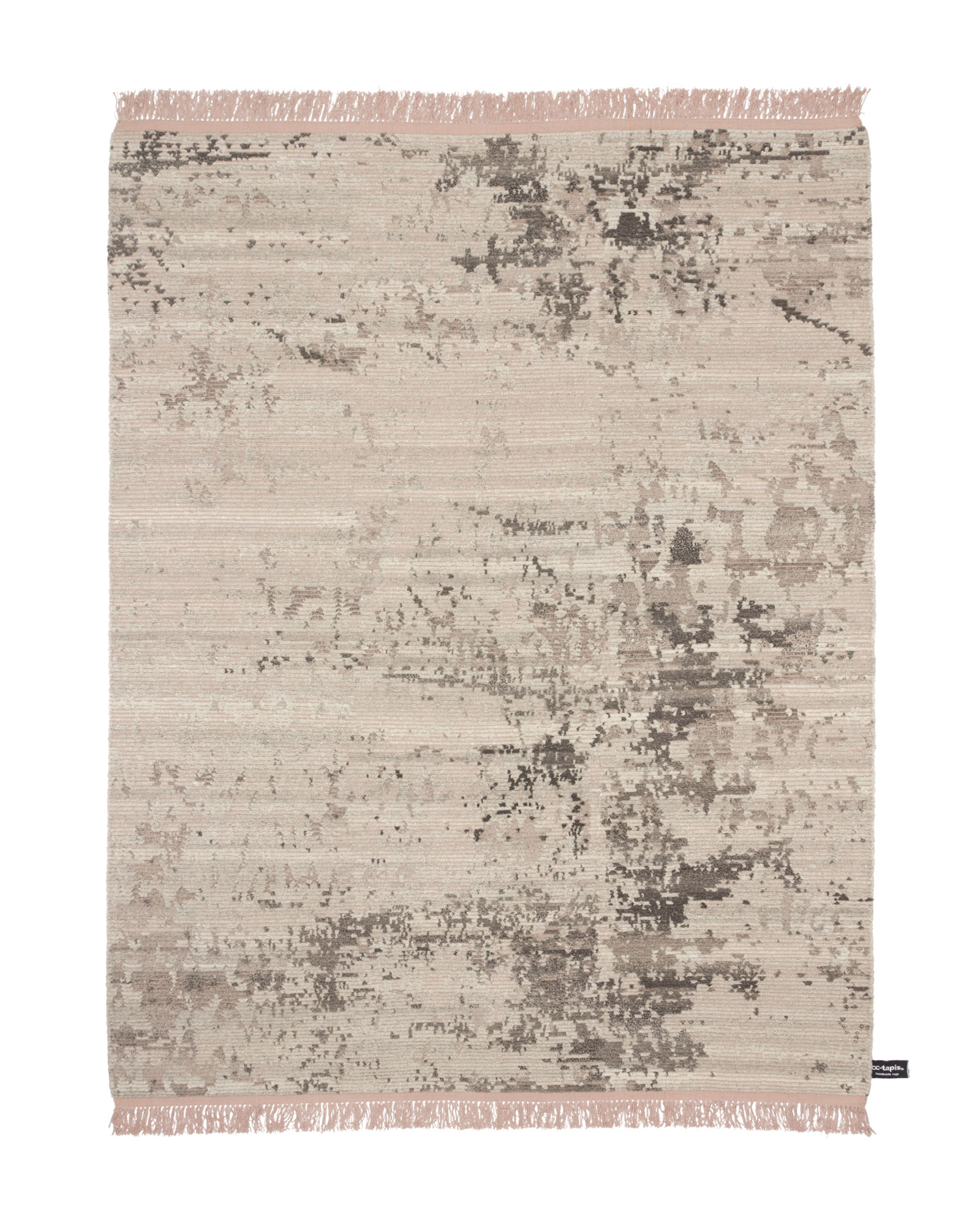 Beauty in simplicity, thick undyed Himalayan wool is knotted onto a colorful cotton warp. The knots are cut at random by the artisans causing some knots to open whilst others remain closed. The color of the cotton is diffused through the natural and warm colors of the wool, more evident where the knots have remained closed and less visible where the knots are open. Creating a beautifully random and worn-down effect which gives the collection its name.