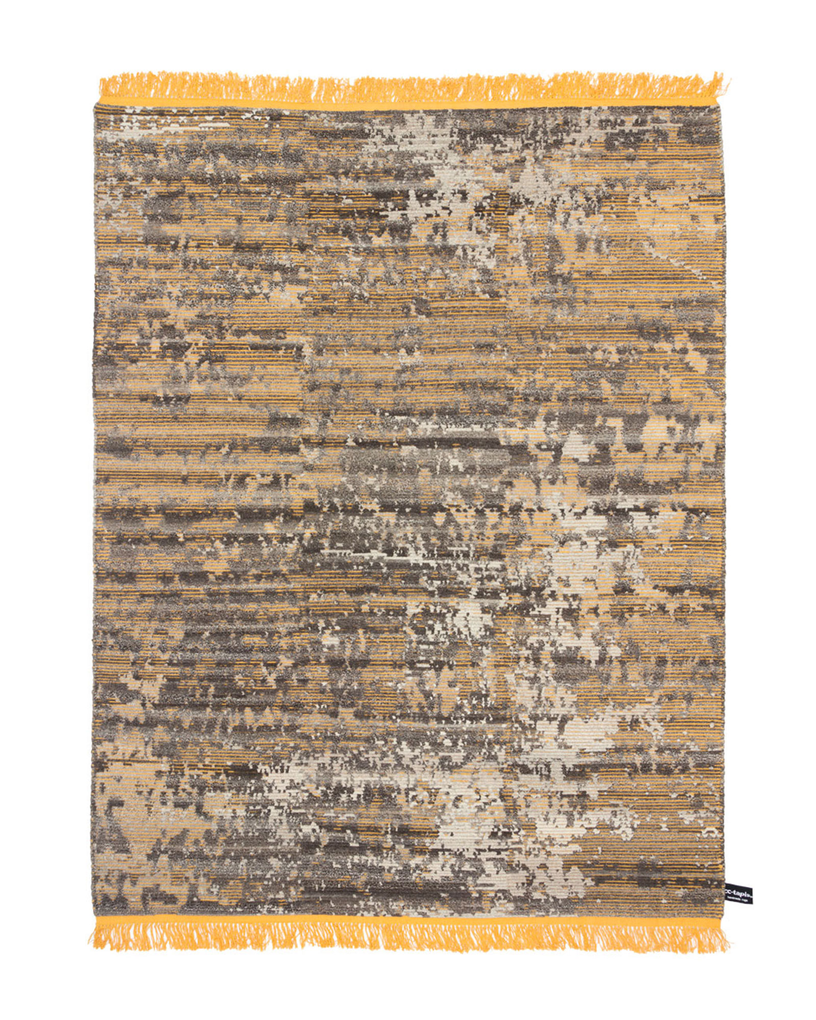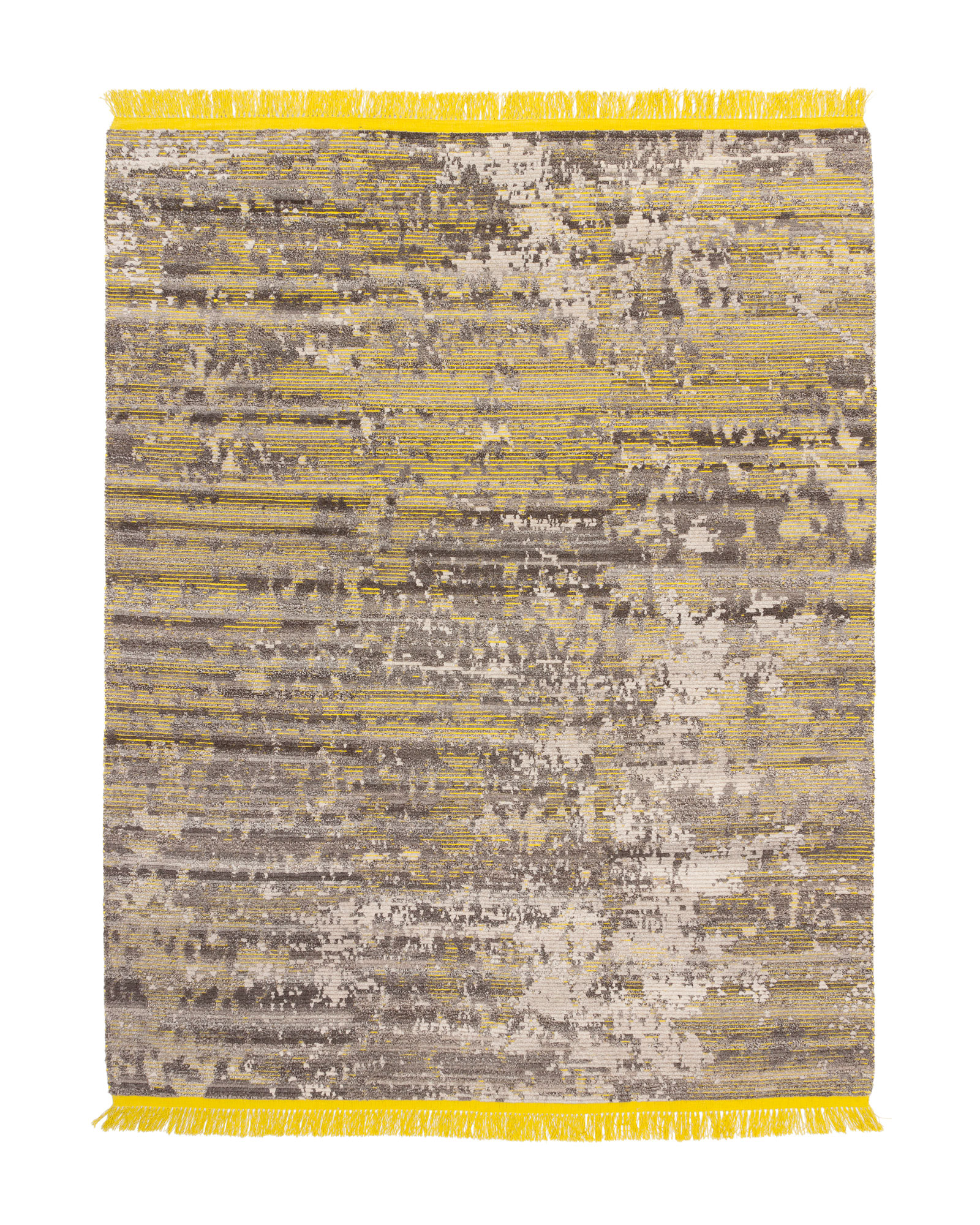 The Oldie collection explores the natural aspects of completely undyed Himalayan wool. A special knotting technique created by cc-tapis is used to create a full pile which is soft and warm to the touch whilst the cotton warp can be dyed in any color which creates a subtle highlight and colorful fringes. After the hand-knotting is finished the artisan cuts some of the knots at random which open, covering the colorful dyed cotton pile creating the beautiful "lived-in" effect which has become the signature feel of the Oldie Collection. Absolutely no chemical or acid washes are ever used during production.