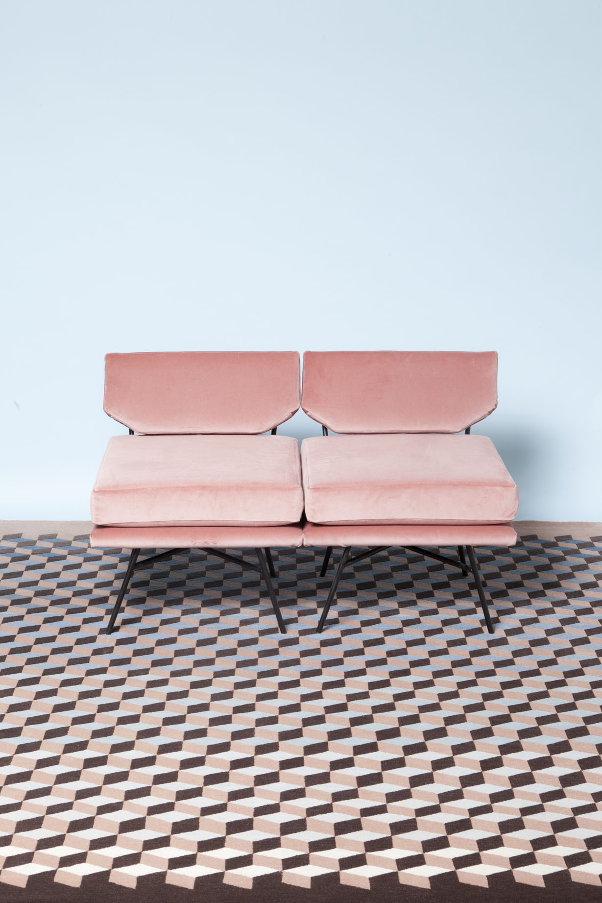 Inspired by ancient geometric motifs, the warm bronze or steel tones give a sense of luxury while the mixture of wool and silk give new life to the metallic colors.
