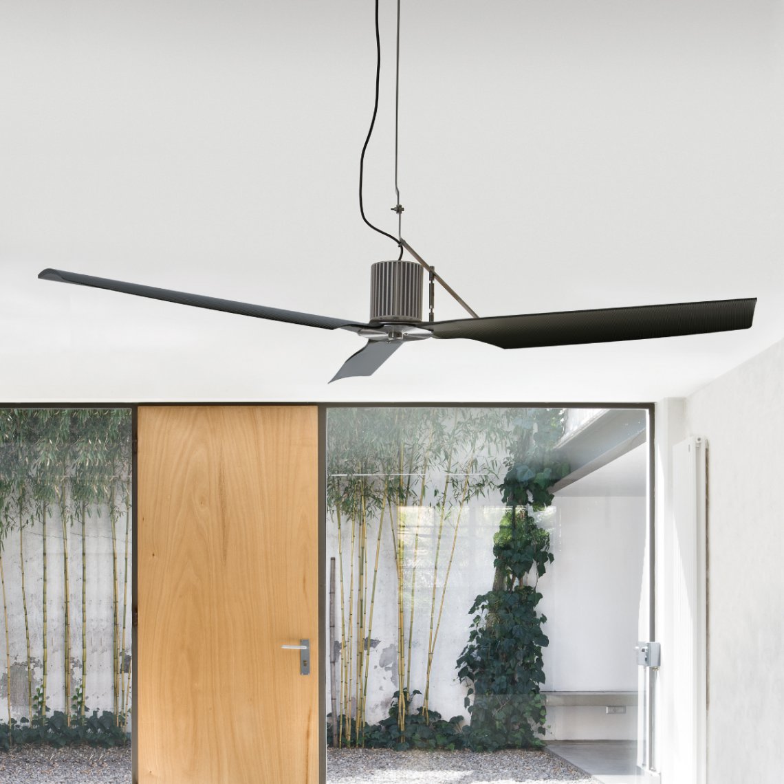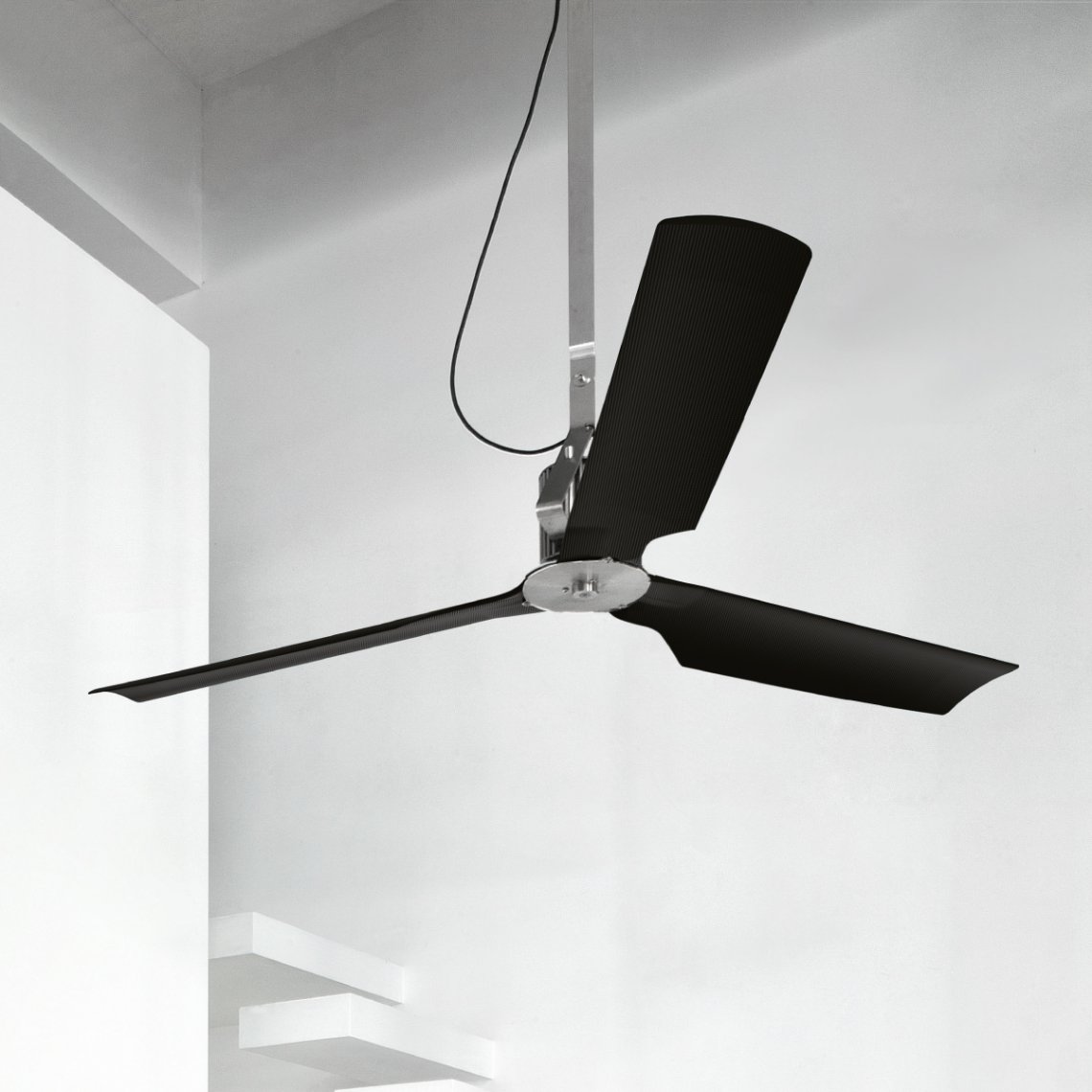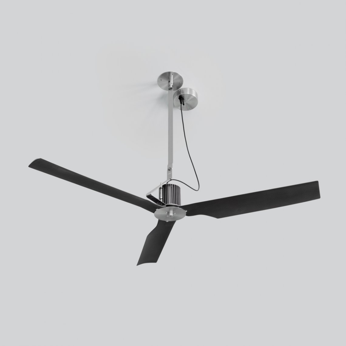 Ceiling fan in AISI 316L stainless steel, with carbon fiber blades. Remote control included