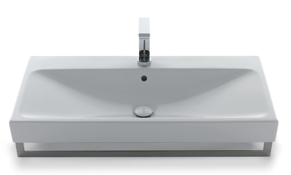 帶溢水口的洗臉盆,適用于懸掛式、臺面式和半嵌入式安裝,提供各種陶瓷飾面。