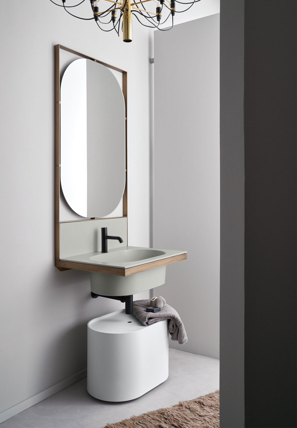 洗臉盆的模塊化系統(tǒng),采用不同的陶瓷飾面,安裝在涂漆鋼壁掛式框架上,帶有陶瓷后擋板。鏡子、毛巾架、金屬托盤和其他 LivingTec? 配件完善了產(chǎn)品。
