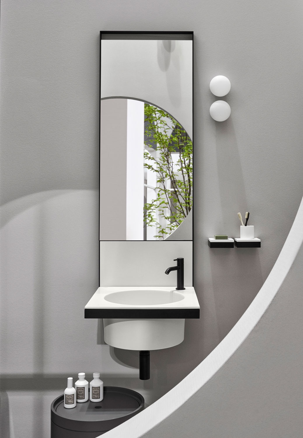 洗臉盆的模塊化系統(tǒng),采用不同的陶瓷飾面,安裝在涂漆鋼壁掛式框架上,帶有陶瓷后擋板。 鏡子、毛巾架、金屬托盤和其他 LivingTec? 配件完善了產(chǎn)品。