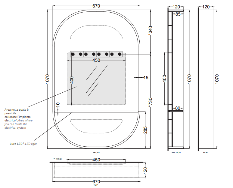 帶玻璃擱板的鏡子,擱板上有 LED 燈