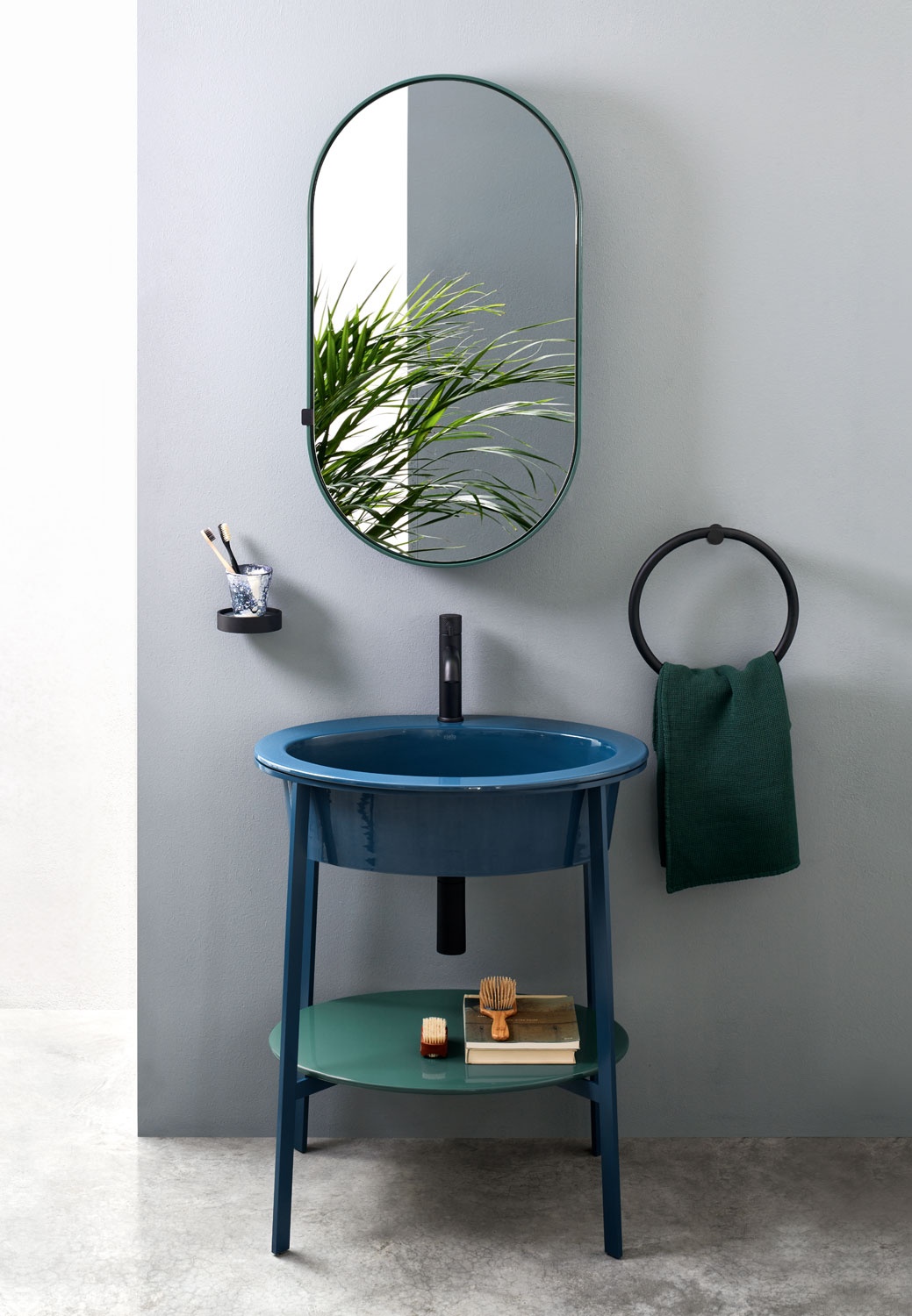 模塊化系統,帶有多種飾面的陶瓷洗臉盆,提供帶或不帶龍頭孔的兩個版本,安裝在有各種飾面的涂漆鋼結構上,并可選擇組合方便的陶瓷或大理石臺面或實用的儲物抽屜漆面或珍貴的天然木材飾面。