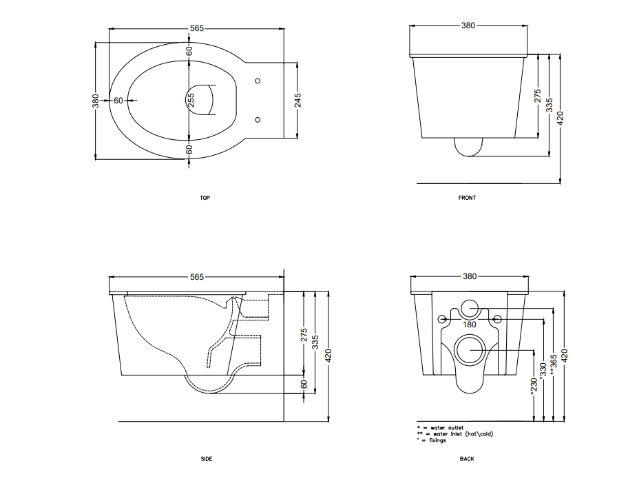 Catino 壁掛式馬桶,帶固定套件 - 無框