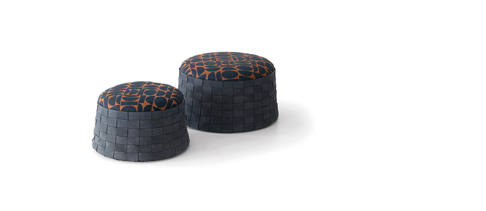Dama seat upholstered with expanded polyurethane foam with two different densities covered with acrylic fiber. Woven leather structure with special raw cut edges finish available in three different leathers: Soffio, Setanil and Natural Velour. If no preference is specified, the edges feature tone-on-tone lacquering. The base is made of painted black wood. Dama seduta in poliuretano espanso con 2 densità rivestite con falda acrilica. Struttura in pelle intrecciata finitura cuoio, disponibile in tre tipologie di pelle: Soffio, Setanil e Natural Velour. I bordi sono realizzati tono su tono se non viene specificata alcuna preferenza. Base in legno verniciata nera.