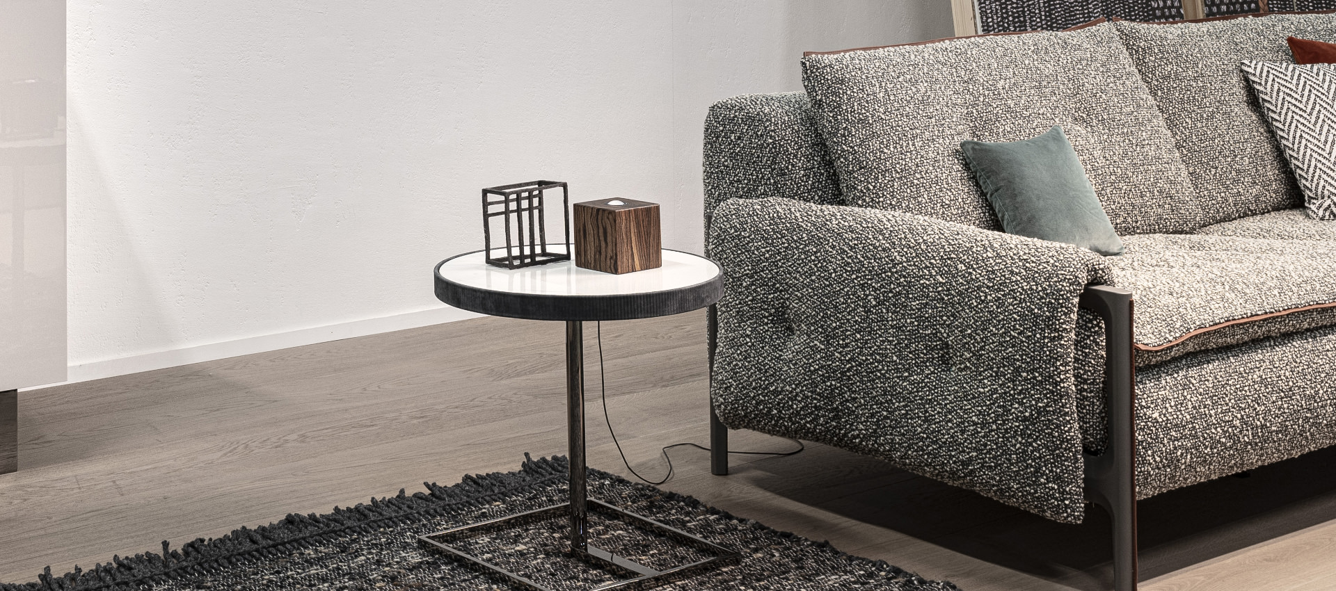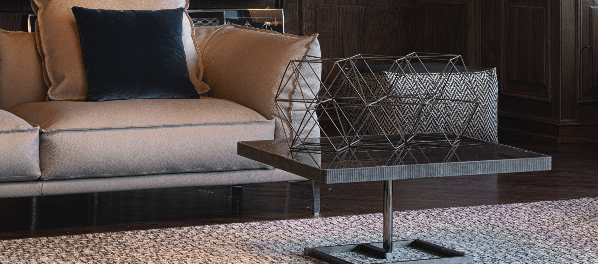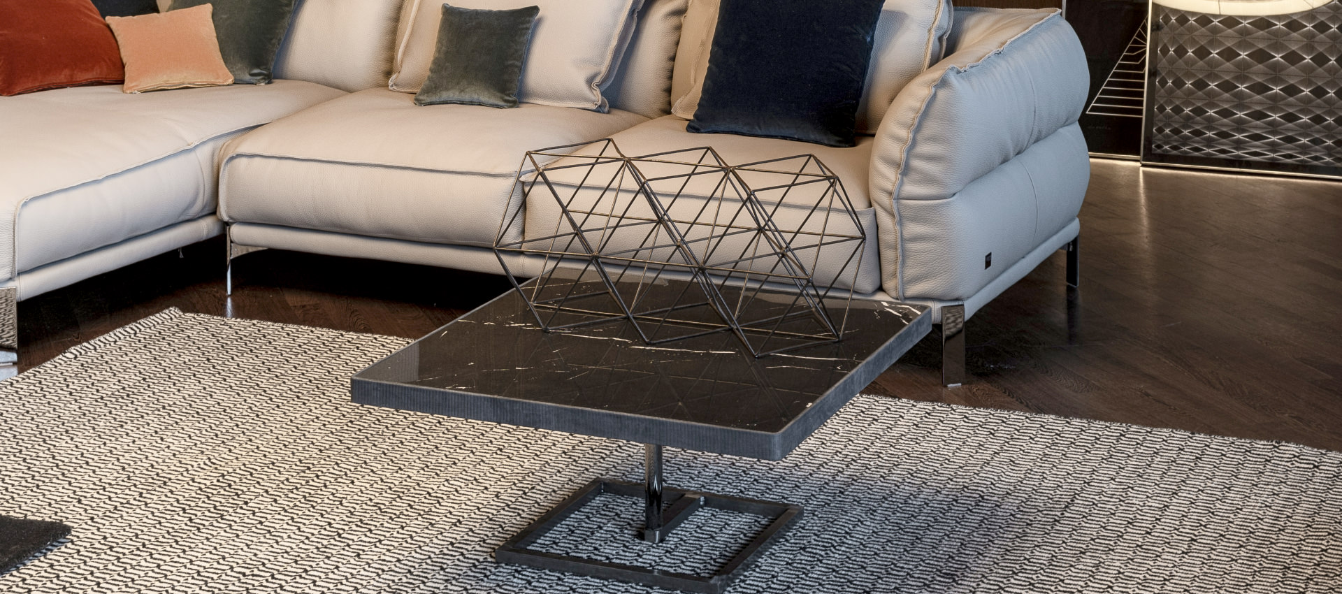Velor. Central part top in ceramic material. Metal coffee table base with