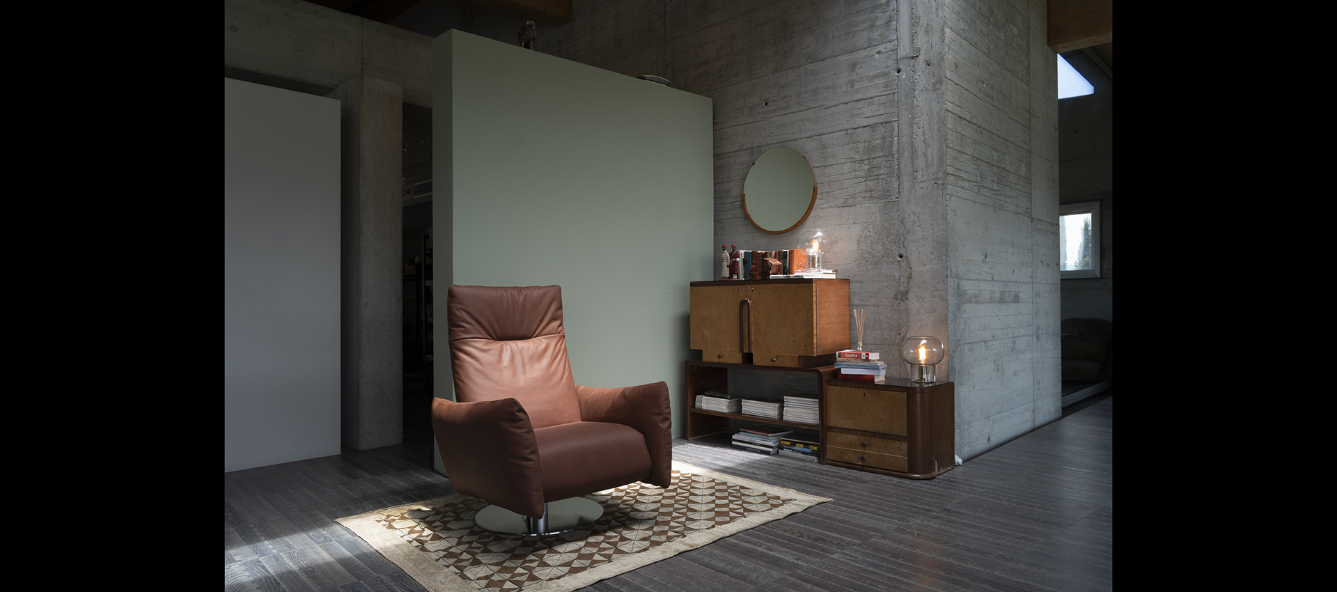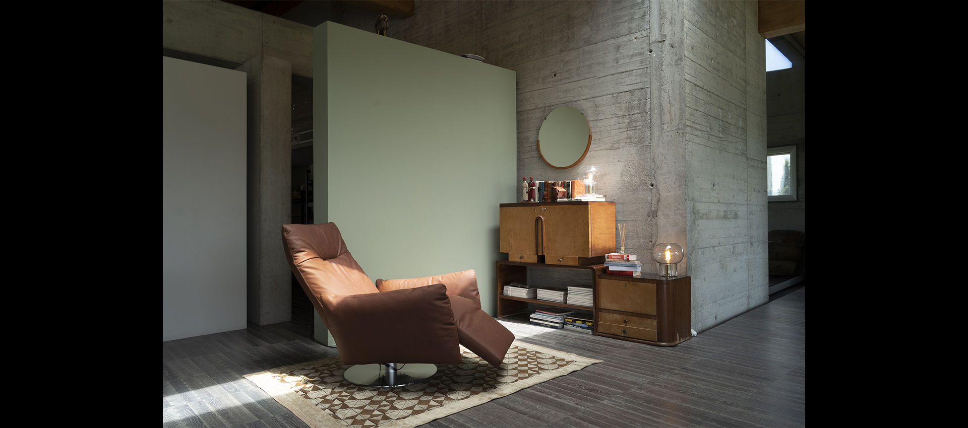 of siliconised polyester microfibers. The armchair is equipped with a Relax mechanism