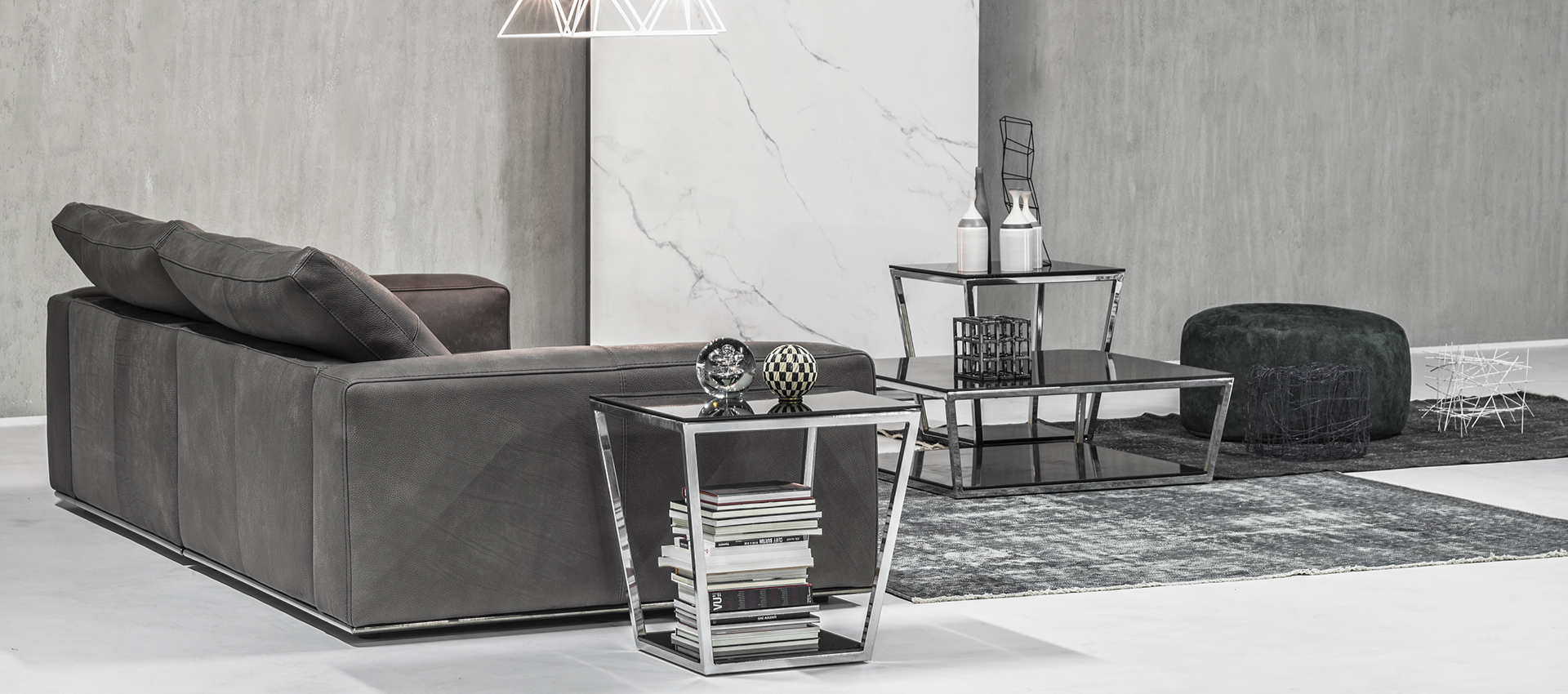 Modular sofa with wooden frame and support of woven elastic ribbons.