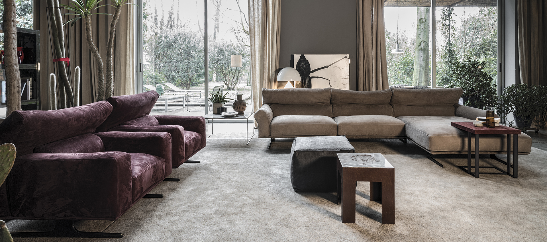 polyurethane foam covered with acrylic fiber. The feet are die-cast by