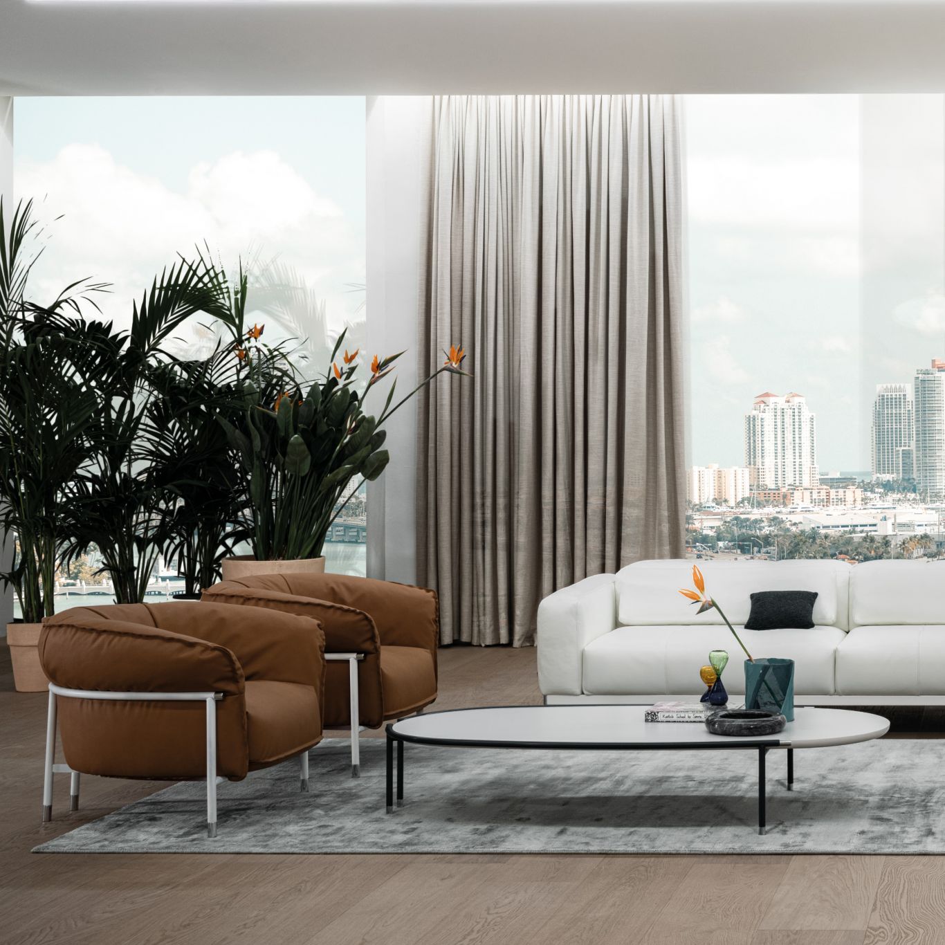 Tavolini leggeri, disponibili in due dimensioni e forme. Il top laccato opaco, disponibile in 7 colori, è fissato al telaio, le sottili gambe sono impreziosite da terminali cromati nelle finiture Standard, Nero e Oro. Tutto soddisfa il bisogno di spazio e il gusto estetico grazie a materiali sostenibili, per costruire gli ambienti del futuro.