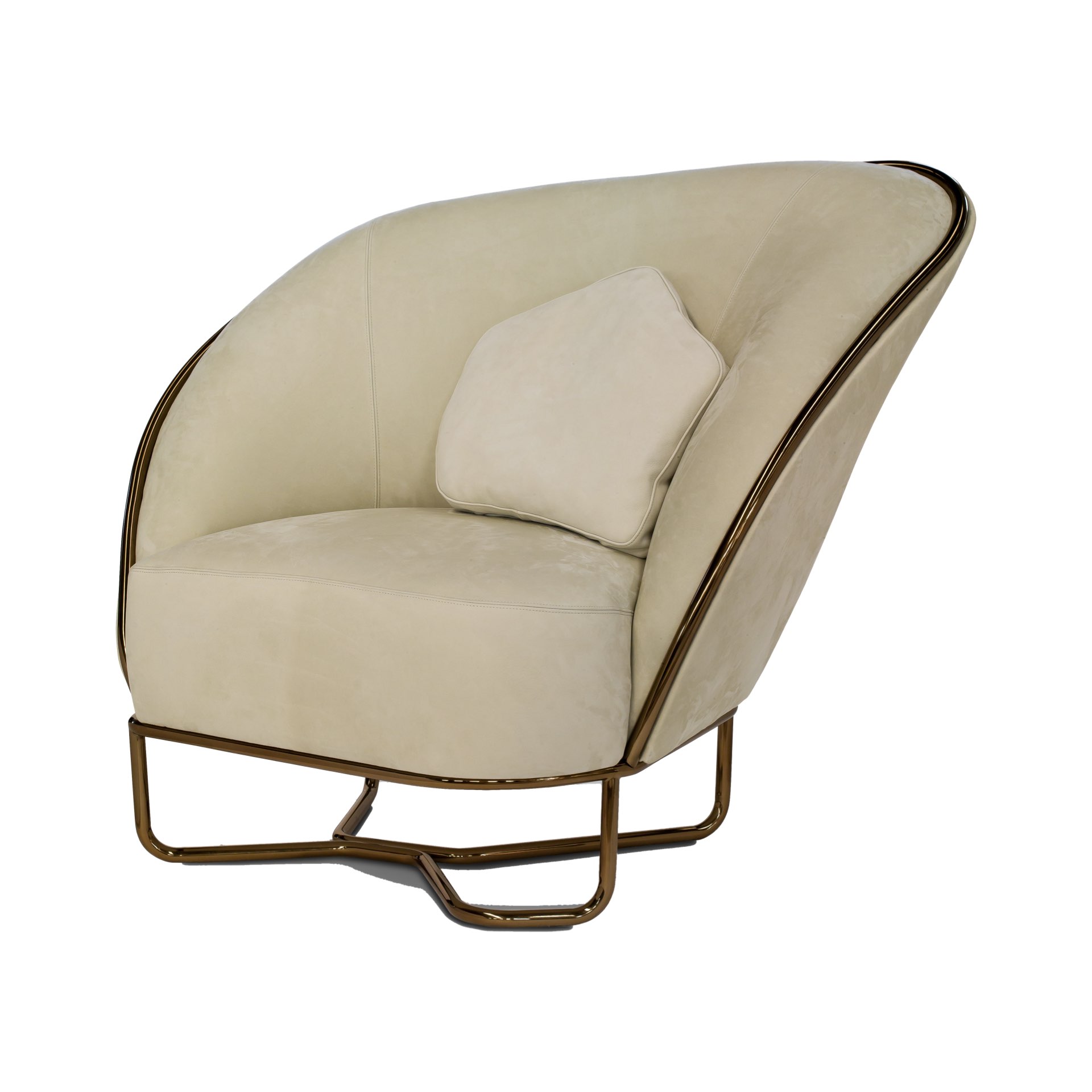 Struttura in legno di pioppo. Profilo schienale e base tubolare in metallo. Rivestimento in pelle o tessuto non sfoderabile. Imbottitura in poliuretano espanso.