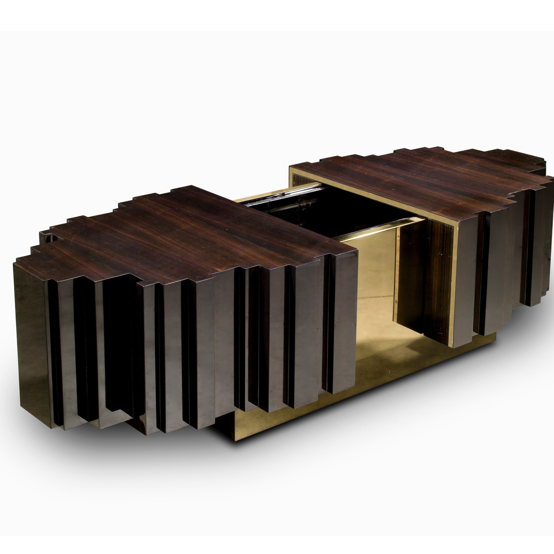 Struttura in legno listellare. Rivestimento in lamina metallica. Top in marmo.