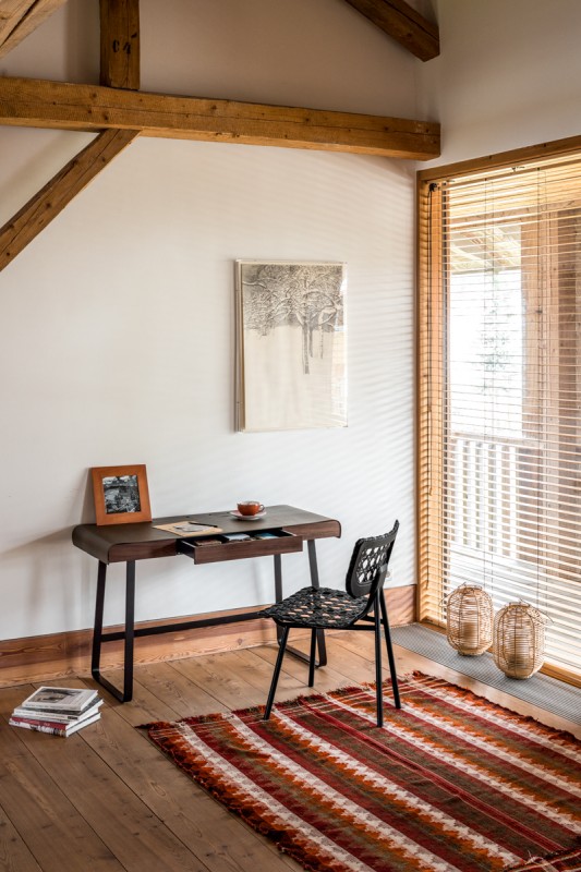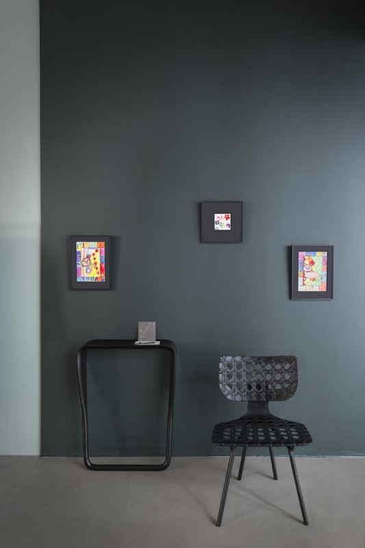 preted with a changed scale and leather as a material. Just as the look of a type font changes depending on its size, the traditional weaving used for A?rias also gains character due to the multiple enlargement of the pattern. The high sitting comfort results from the leather straps stretched on a wooden frame. Similar to the leather stretched on a drum, the result is flexing minimal surfaces absorbing the movements of the body and making sitting and leaning back especially comfortable.