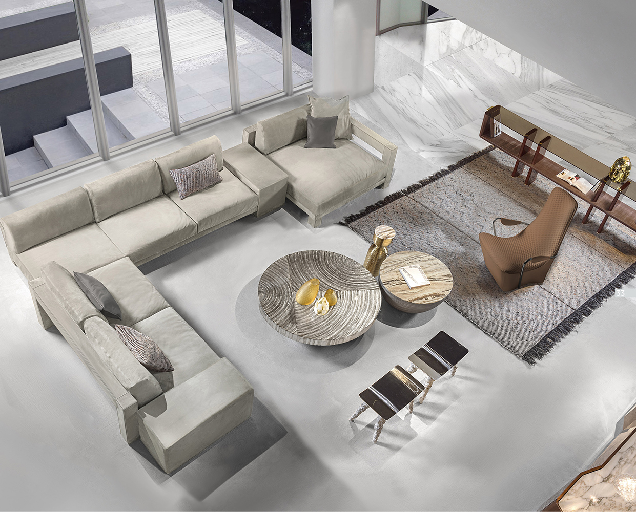 Vision modular sofa is an attractive proposal for fans of square shapes. This item with an essential but sophisticated design makes geometric simplicity its strength, expressing modernity and harmony of proportions. The various available modules allow to create many customised combinations, in order to meet the needs of each customer. The structure of Vision elements has a square section that is completely upholstered with fabrics or leathers, obtaining a perfect balance of volumes, where soft pillows ensure a pleasant sense of relaxation. The external structure of the sofa is accurately upholstered using a sophisticated technique that allows to cover each individual panel without seams.
