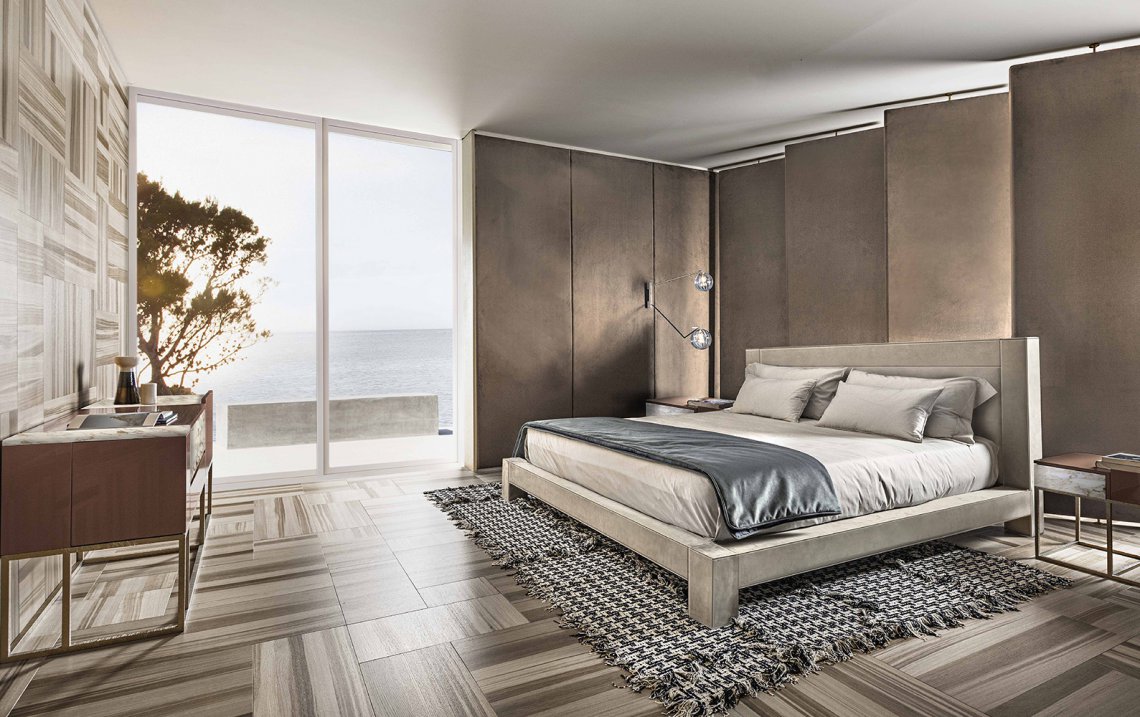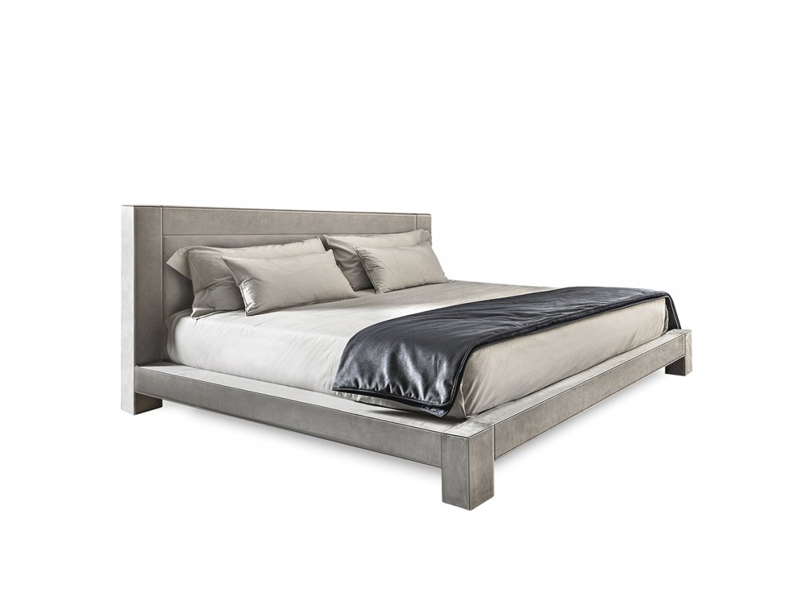 Vision bed is an attractive proposal for fans of square shapes. This item with an essential but sophisticated design makes geometric simplicity its strength, expressing modernity and balance of proportions. The structure of Vision bed has a completely upholstered square section, which embraces the mattress and harmoniously gives continuity to headboard and siderails. All the panels composing this bed are accurately upholstered in fabric or leather using a sophisticated technique that allows to cover them without seams.