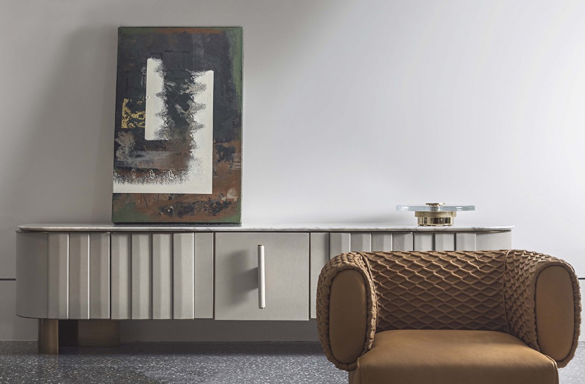 Table lamp Saturn has a refined and contemporary look where a metal support is enriched by a “pulegoso” glass disk with a great thickness, obtained thanks to the casting-in-plates technique. This working process dates back to the beginning of Twentieth Century and it helps to obtain a glass full of little bubbles whose result depends on the skills of the artisans that create unique pieces. The designer took inspiration from this technique because it can exalt the extraordinary beauty of the glass crossed by the light rays. The intensity of the light can be adjusted thanks to a touch system placed on the metal insert above the glass disk.
