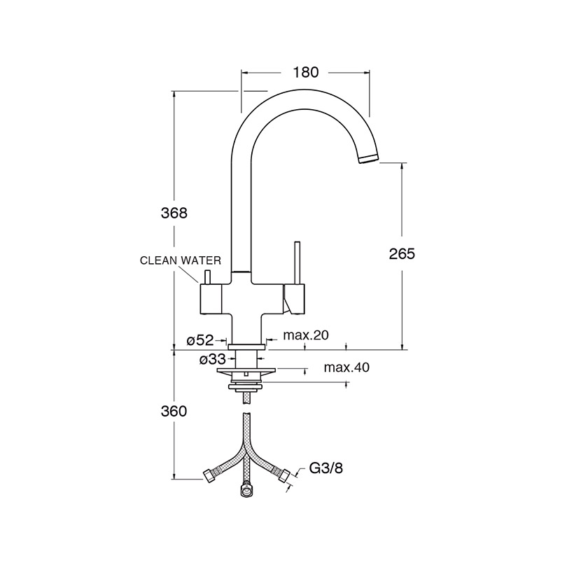 Single-control Regular kitchen mixer, swivel spout, single-hole deck-mounted, with right-hand side mechanical mixing. Smart water-saving (double click) and energy-saving (cold water in the vertical control position) opening system. Independent left-hand s