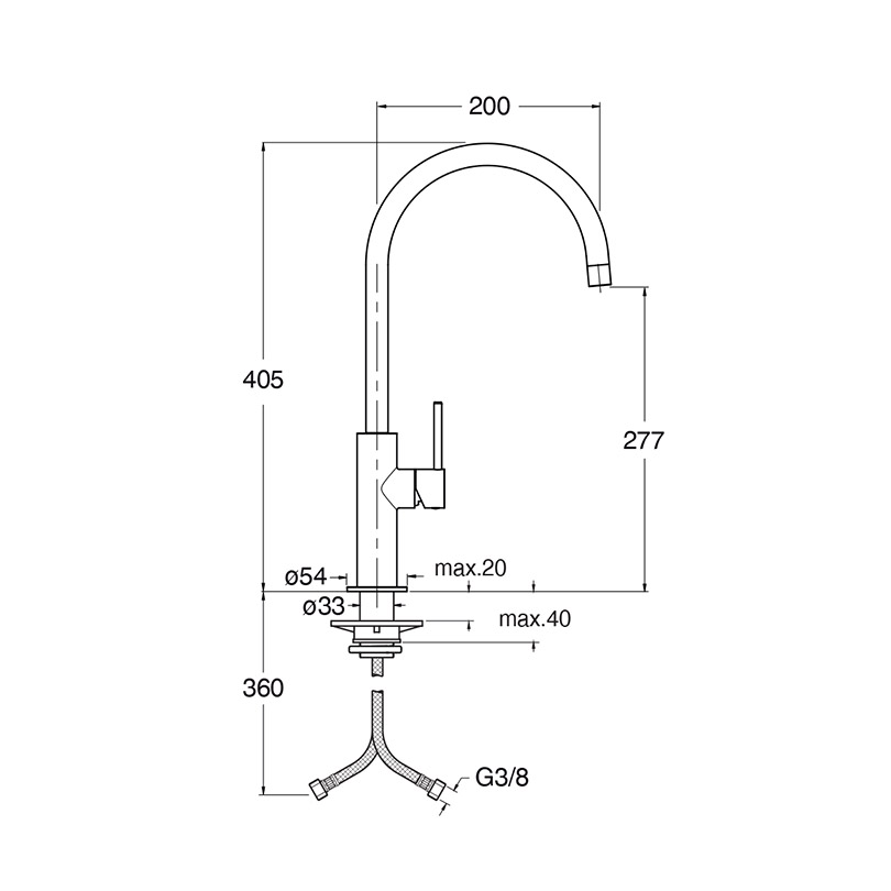 Single-control kitchen mixer, swivel spout, single-hole deck-mounted, with right-hand side mechanical mixing, H. 405 mm