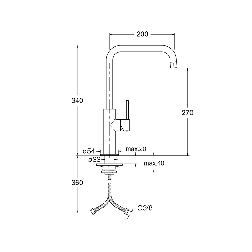 Single-control kitchen mixer, swivel spout, single-hole deck-mounted, with right-hand side mechanical mixing, H. 340 mm
