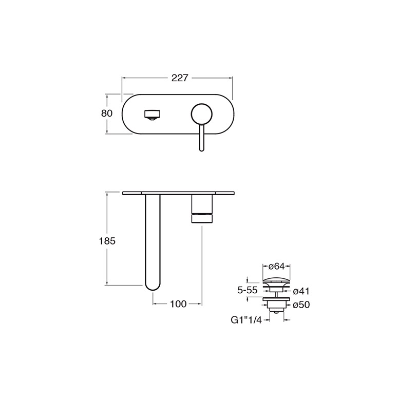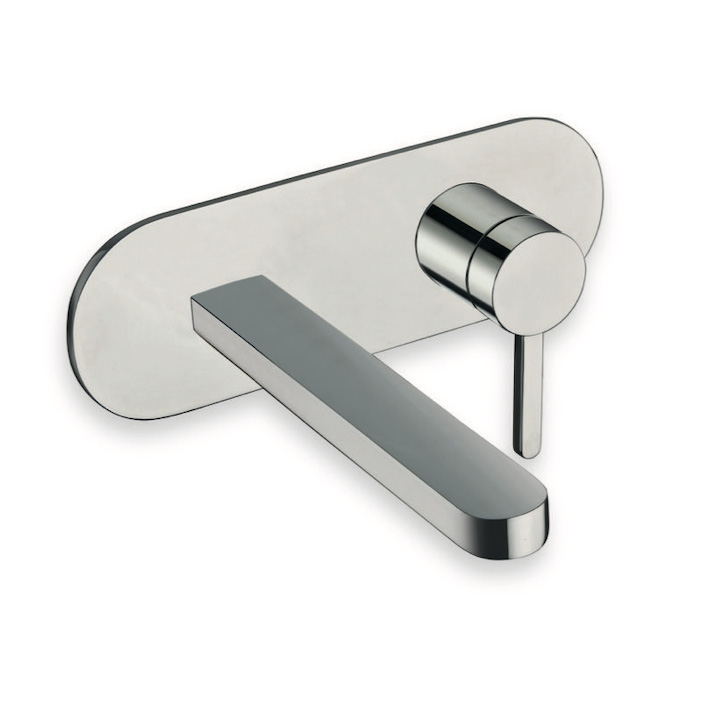 Single-control wall-mounted external set for Regular Washbasin, metal plate, with mechanical mixing and 1" 1/4 U&D* drain. Spout length 185 mm. For completion with recessed part CRICS200 (RH) / CRICS201 (LH)