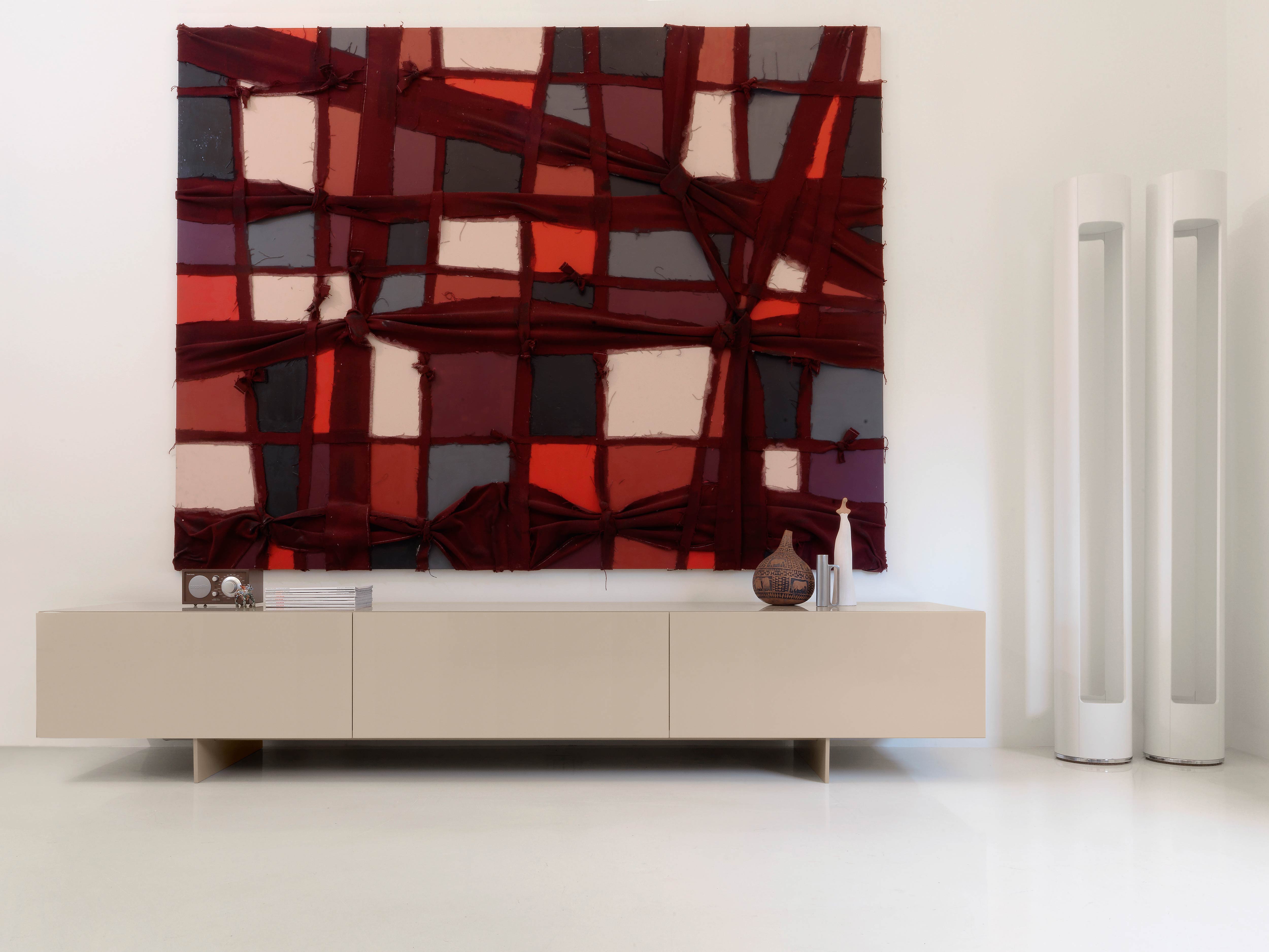 The Uni cabinet series by Piero Lissoni, defined by large volumes and an extremely geometric and rigorous design, further expands with the addition of two brand new wall-mounted models with three drawers or three leaf doors. For all models the structure is made of medium-density conglomerate wood, equipped with aluminium-lined poplar plywood hinged-doors and drawers, with minimum thickness. For the free-standing version, the base panels are made of thick laminate with a metal frame for support. All cabinets come with a matte or glossy finish in the colours of the collection.
