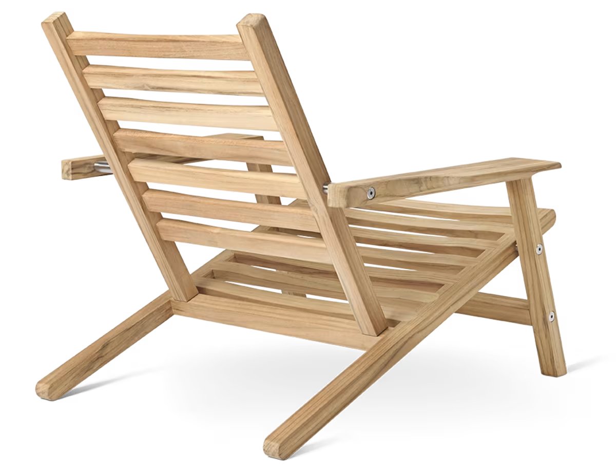 The comfortable Outdoor Deck chair is part of the AH Outdoor series, designed by Alfred Homann in 2022. Like the other outdoor furniture in the series, the deck chair is characterized by strict lines elegantly combined with soft, rounded details. Comfort is paramount with carefully measured angles in the seat and backrest. The deck chair is made of FSC?-certified teak, a hardy type of wood that patinas beautifully over time. The cushion is sold separately.