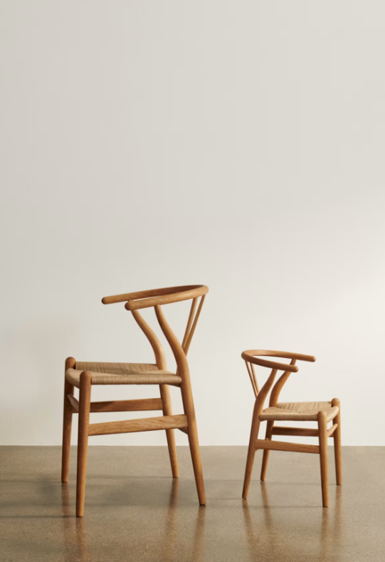 In celebration of Hans J. Wegner’s 110th birthday, the iconic 1949 Wishbone Chair has been reimagined for children. This complex, sculptural chair has been carefully scaled down by Carl Hansen & S?n to achieve the exacting proportions of the original in solid oak and woven paper cord. The result is equally as timeless as elegant and a beautiful addition to a bedroom or playroom, suitable for age 3+.